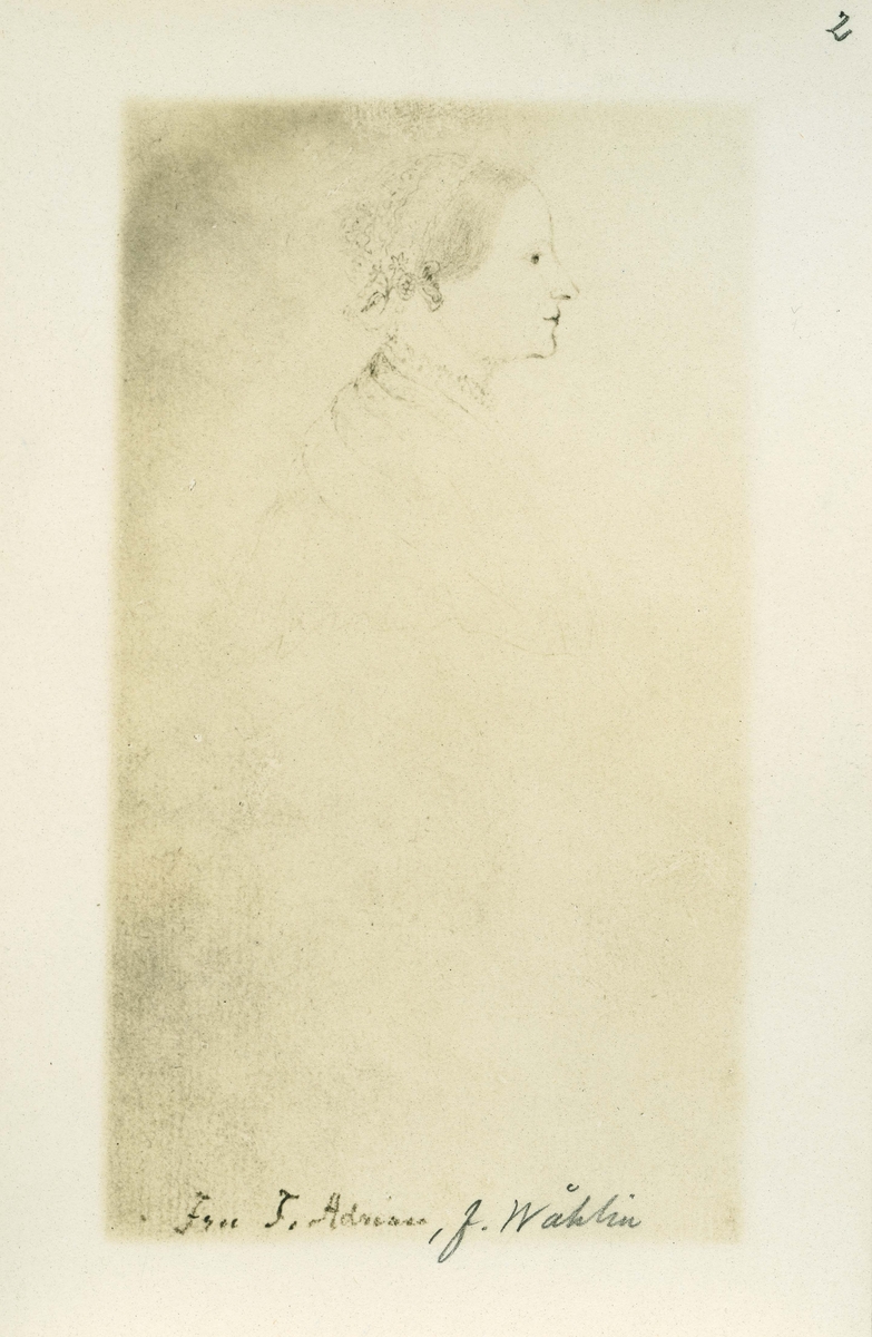 Tecknat porträtt av Fredrika Charlotta Adrian, fru till Hovpredikant Samuel Adrian.