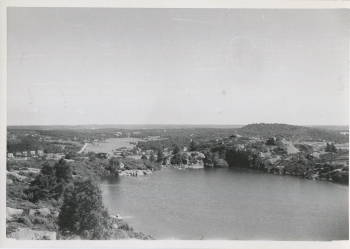 Bergsjön/Färås tjärn 1950-tal. I bakgrunden ses Vommedalen och till höger Sagåsen