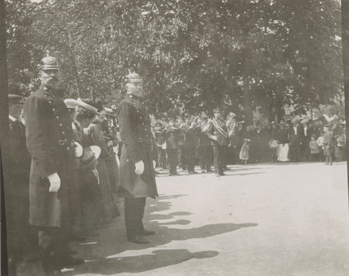 Firande av Barnens Dag i Oskarshamn med blåsorkester och poliskonstaplar som vakar över ordningen.