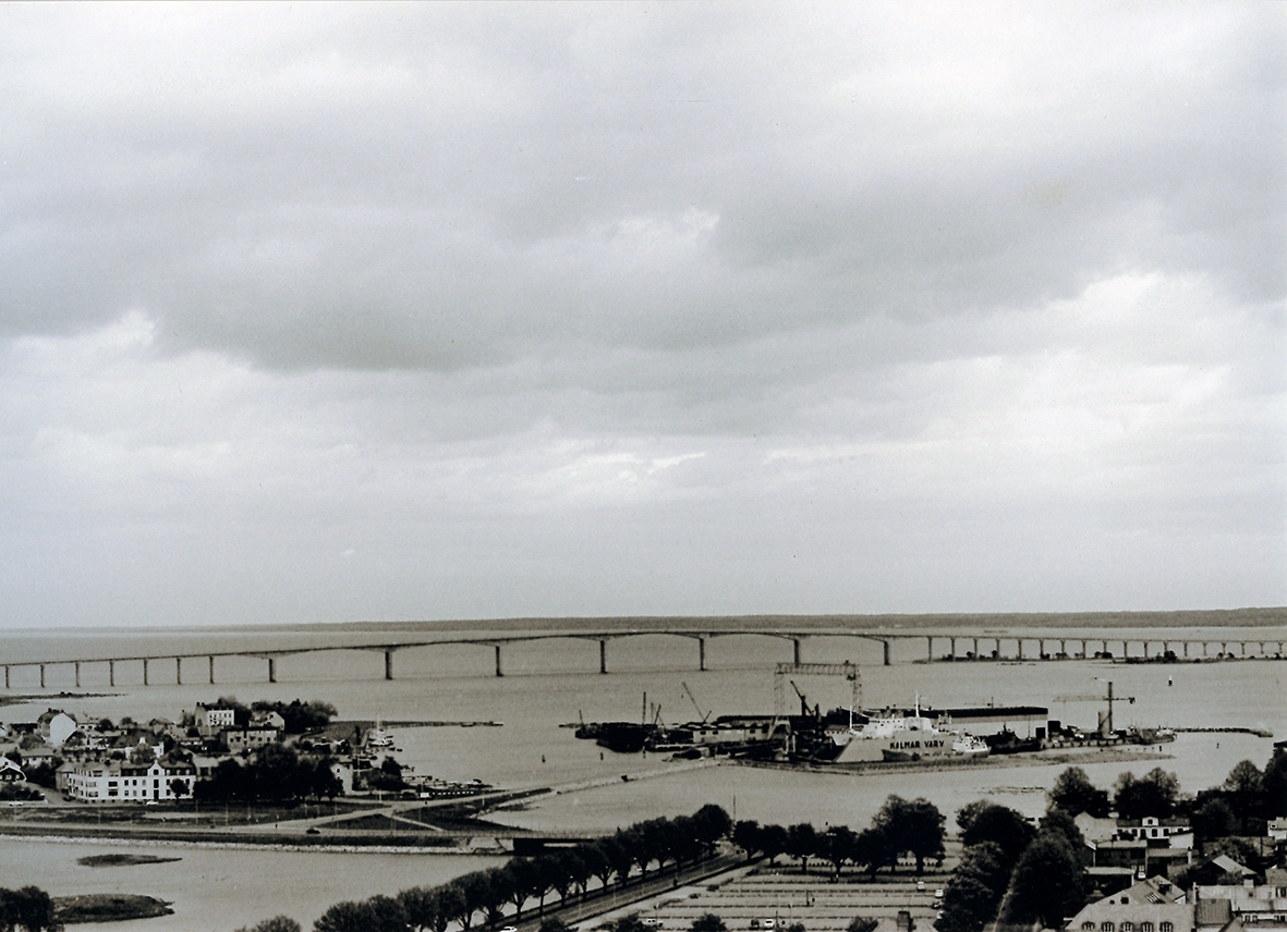 Vy från Ångkvarnen mot Ängö och Kalmar varv med Ölandsbron i bakgrunden.