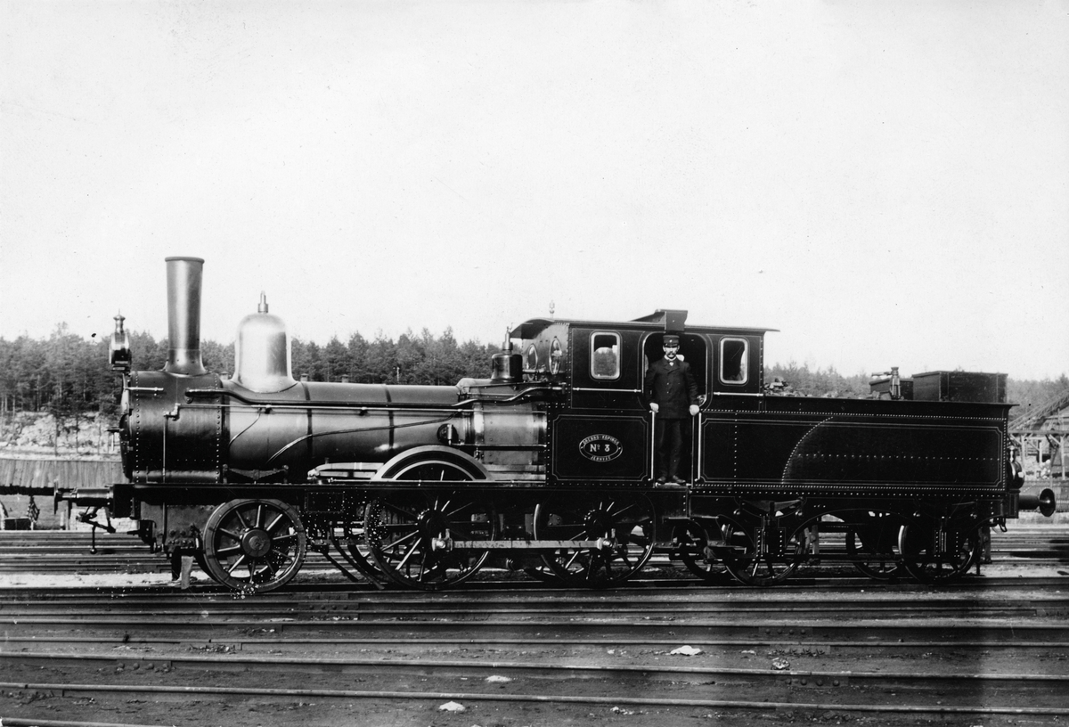 ÖKJ:s lok med lokförare Westerlind. År 1904. Fotograf E. Sörman.