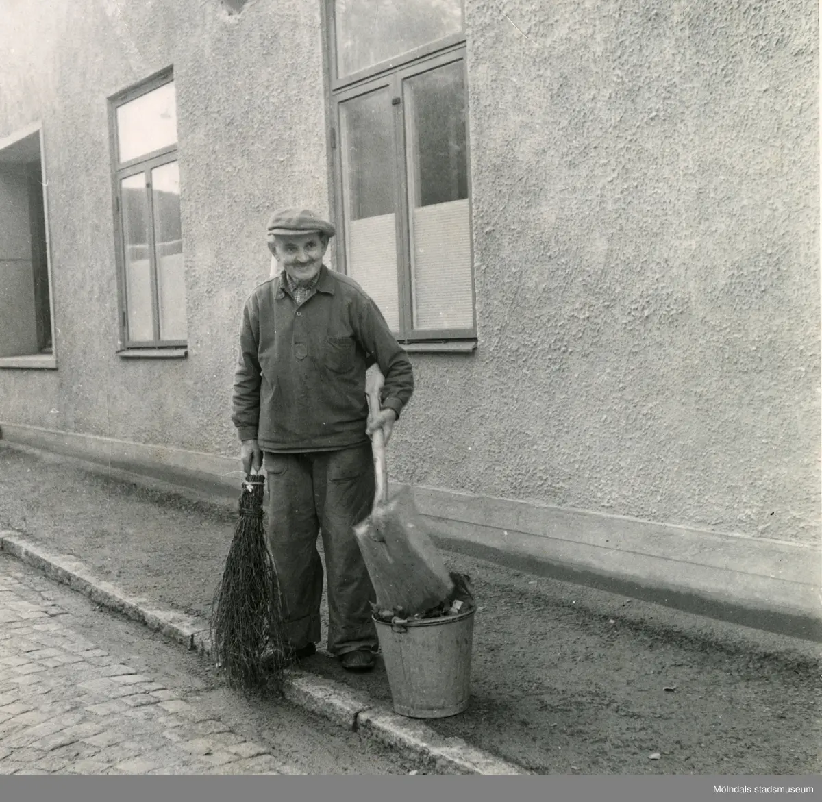 Albert, gårdskarl på Viktor Samuelsons fabrik "Strumpan", i Mölndals Kvarnby. Okänt årtal. Statyn Albert, av konstnären Lars Spaak, som står på Mölndals Torg, har fått sitt namn från denne Albert.