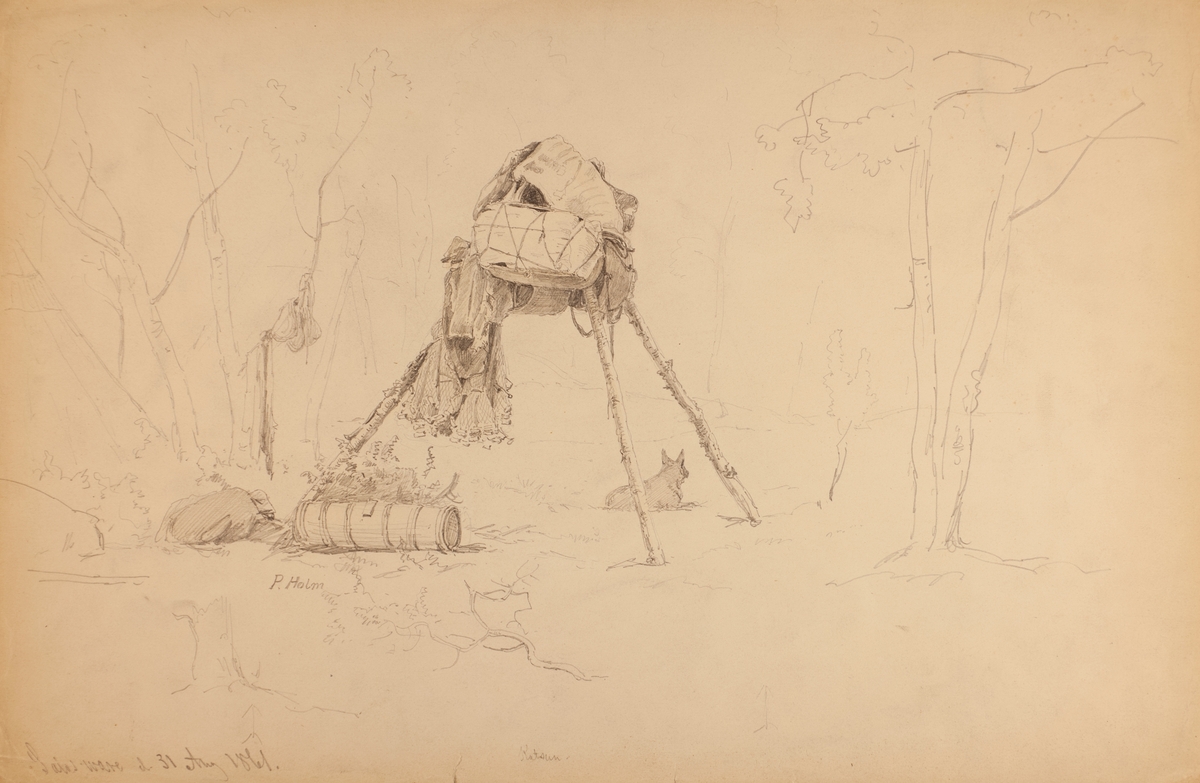 Teckning. Upphöjd ställning för förvaring. "(?) d. 31 Aug 1861. P. Holm." L.A. 1657.