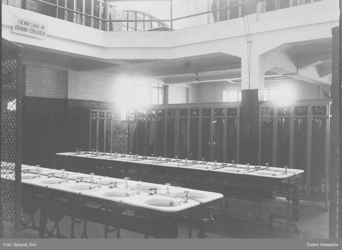 Omklädningsrum på CV med tvättställ och klädskåp, 1927