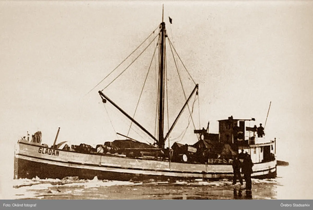Lastbåten M/F Gladan fast i Hjälmaren is, före 1925