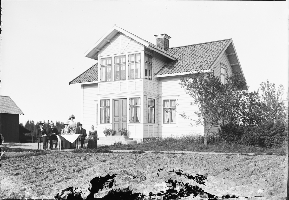 Sällskap utanför bostadshus, Östhammar, Uppland