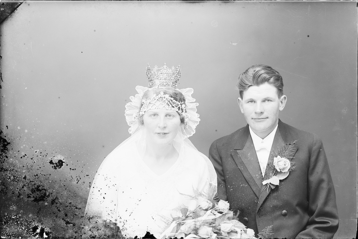 Ateljéporträtt - brudparet Andrea Lundén och Axel Eriksson från Börstil socken, Uppland