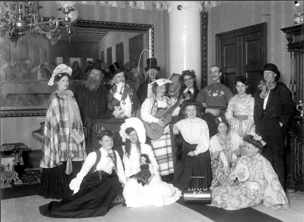 Maskerad i Arnellska huset. Margit Arnell gift Wahlgren i mitten.