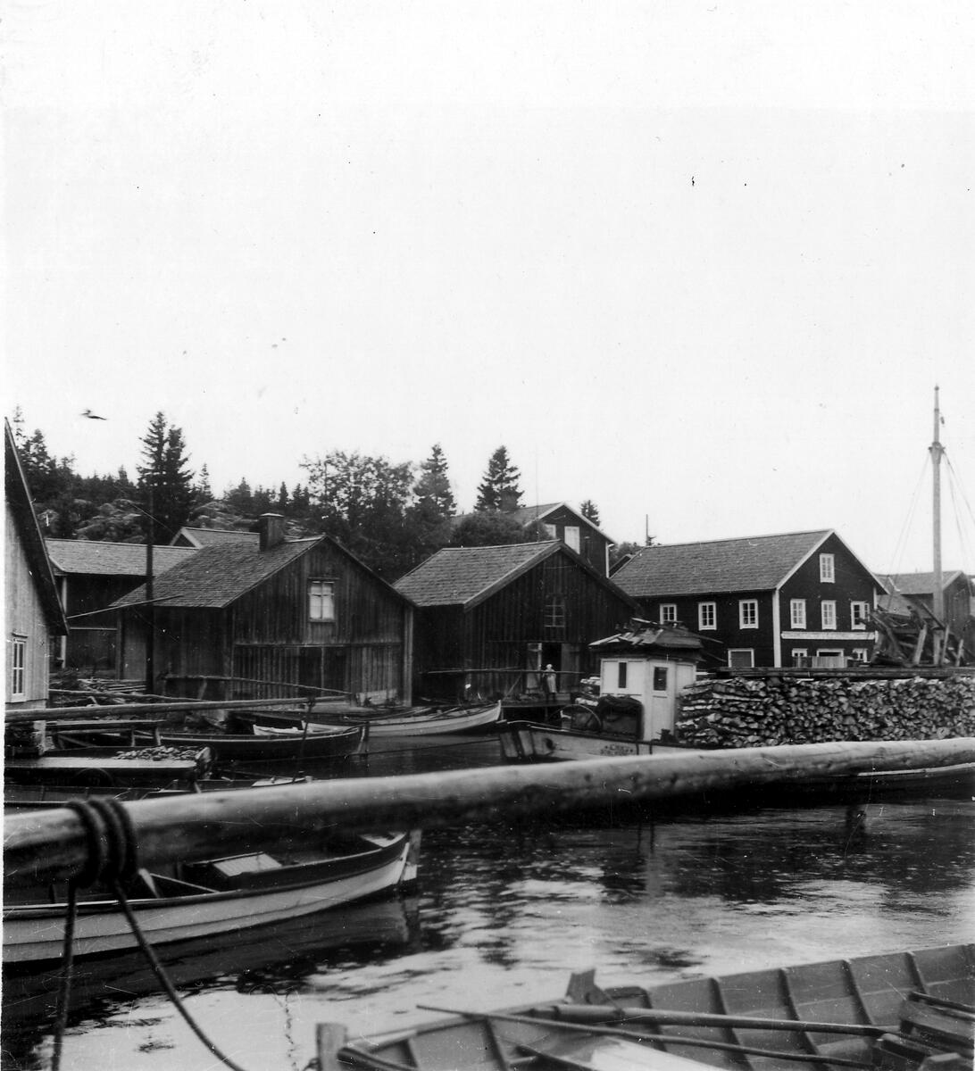 Sjöbodar med eldstad och boningsrum på övervåningen.