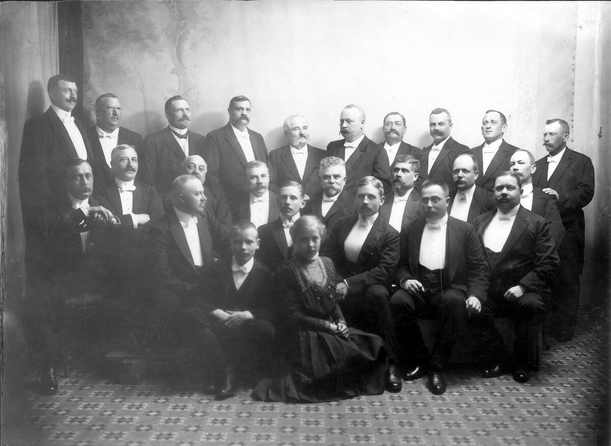Flickan Inez "Anna Nora" Lundqvist, bakom henne med lockigt hår, vit mustach och vitt skägg hennes far Fredrik Lundqvist