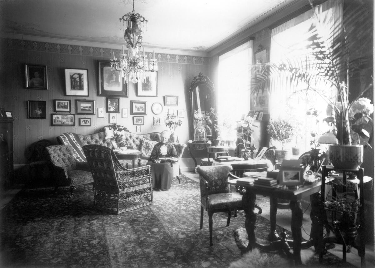 Landshövding Rydings änka i sitt hem på Framnäs, Härnösand. På baksidan av bilden står "Till Bror Ryding 1/8 1924"