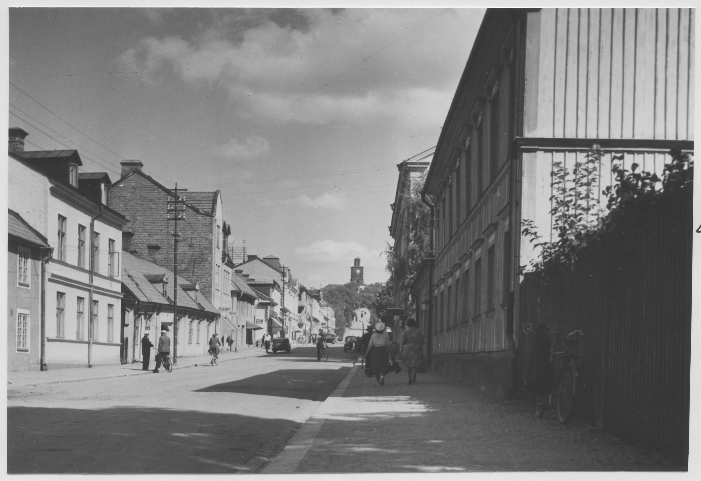 Beskrivning: Rådhuset med takryttaren, byggt 1783, och Kyrkogatan i riktning mot Vårfrukyrkan.
