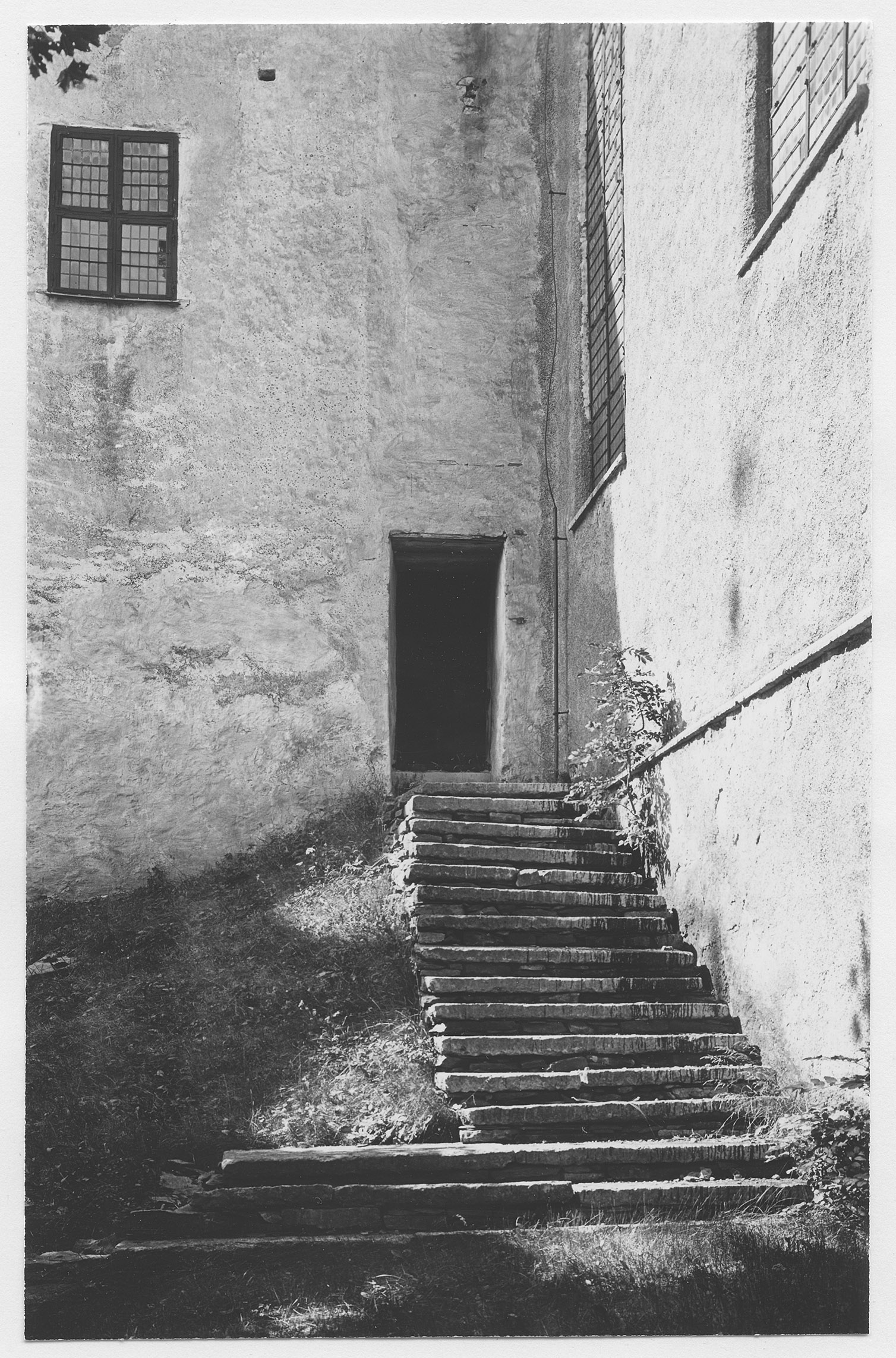Beskrivning: Trappan till slottsträdgårdens parter.