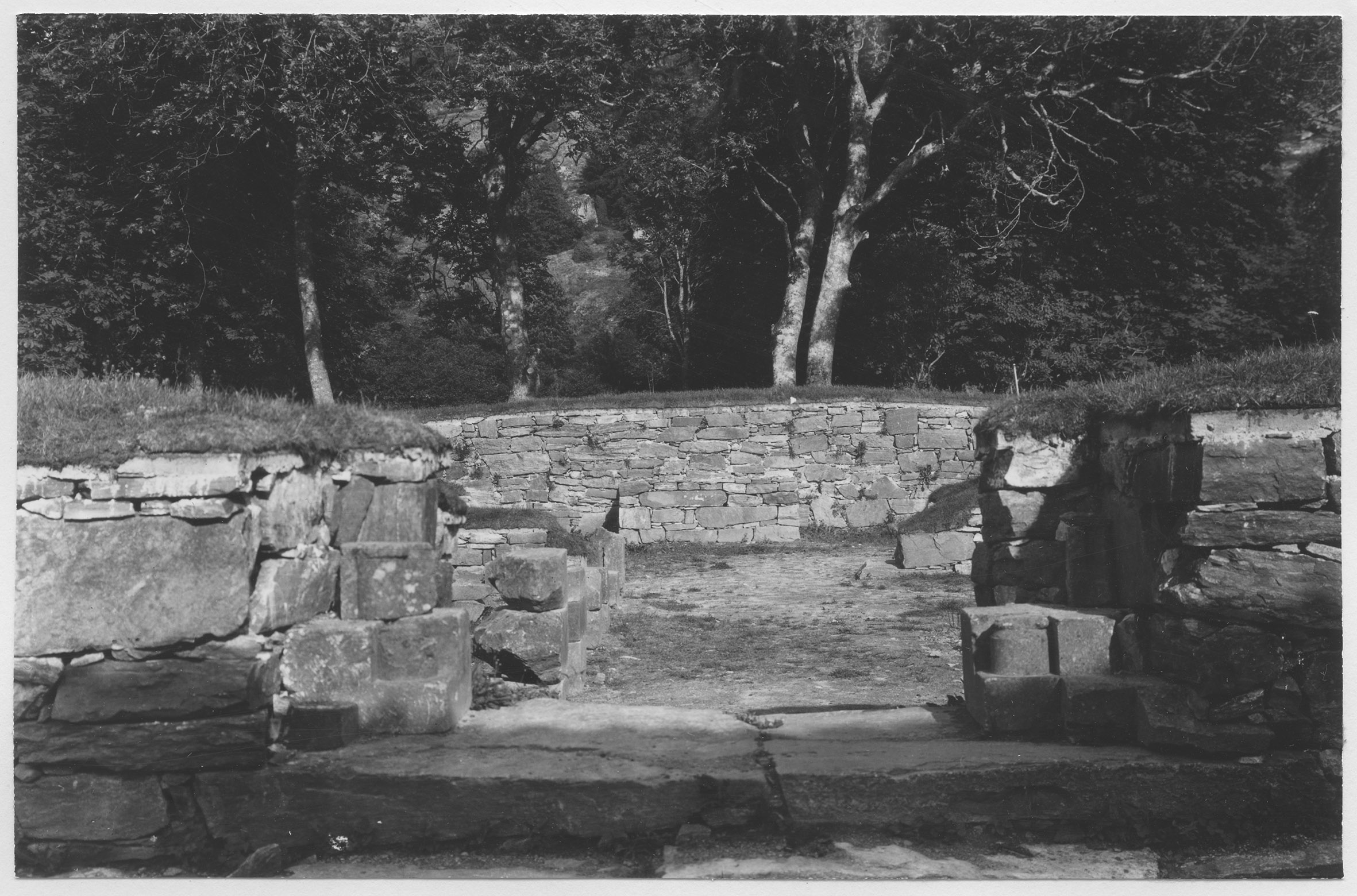 Beskrivning: De framgrävda grundmurarna av klosterkyrkan.