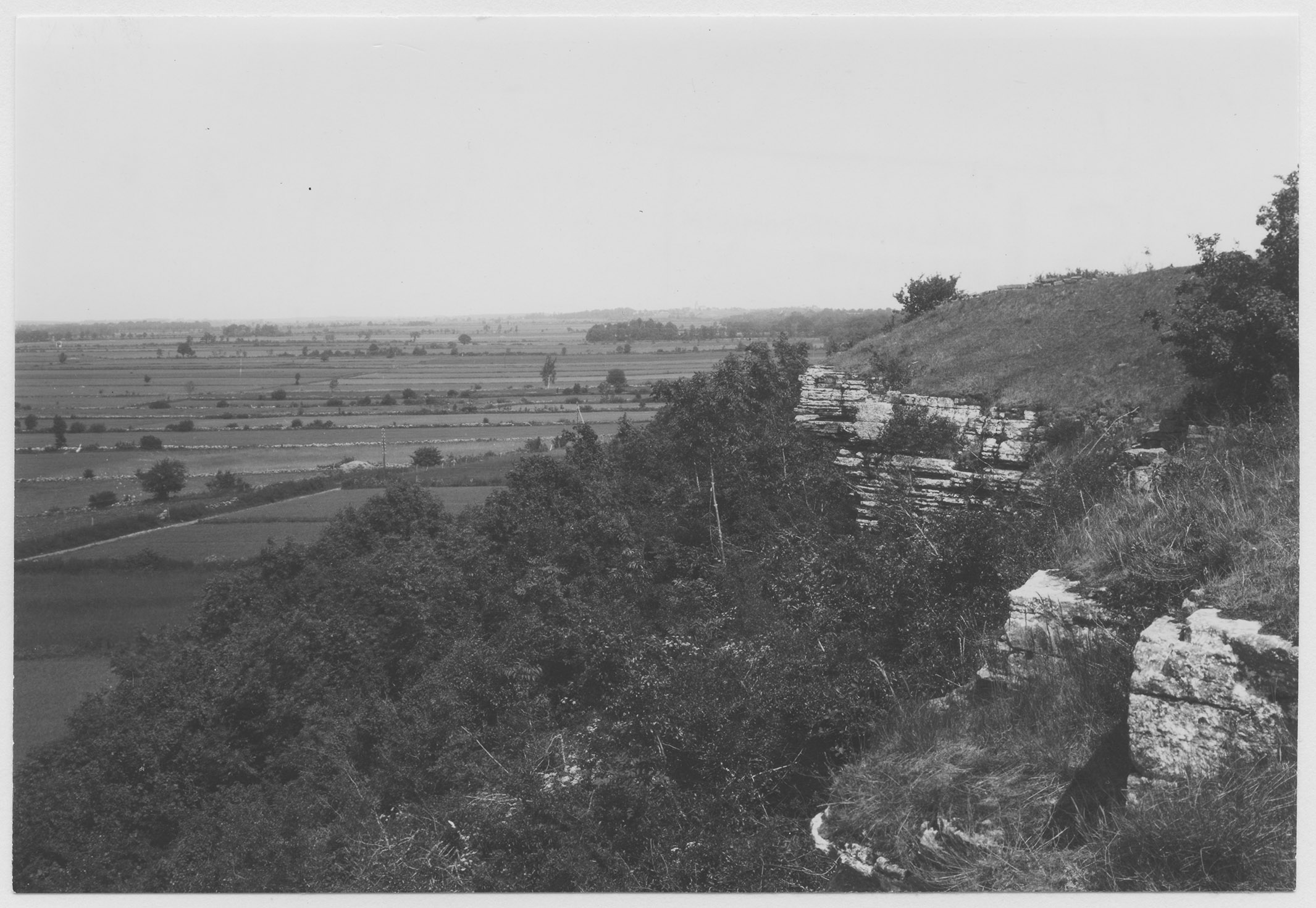 Beskrivning: Till höger över stupet Borrums allmogeborg. I fonden Resmo. Religiös samlingsplats från hednisk tid.