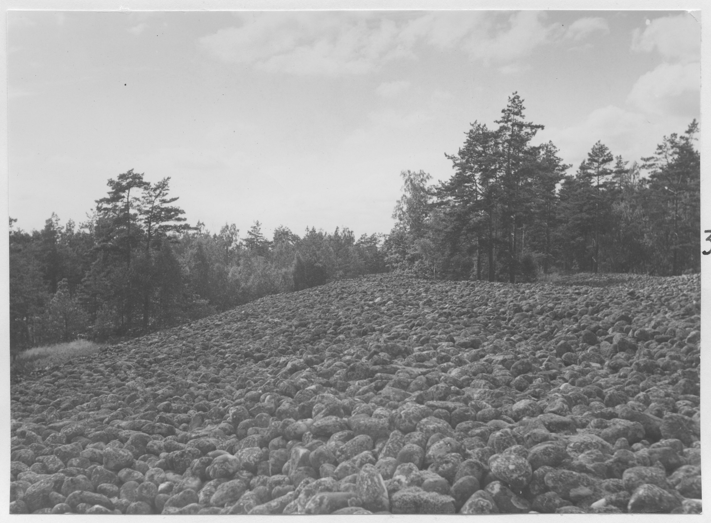 Beskrivning: Rullstenanhopningen mellan Jenny och Västervik. Det senglaciala havets äldre strandvallar