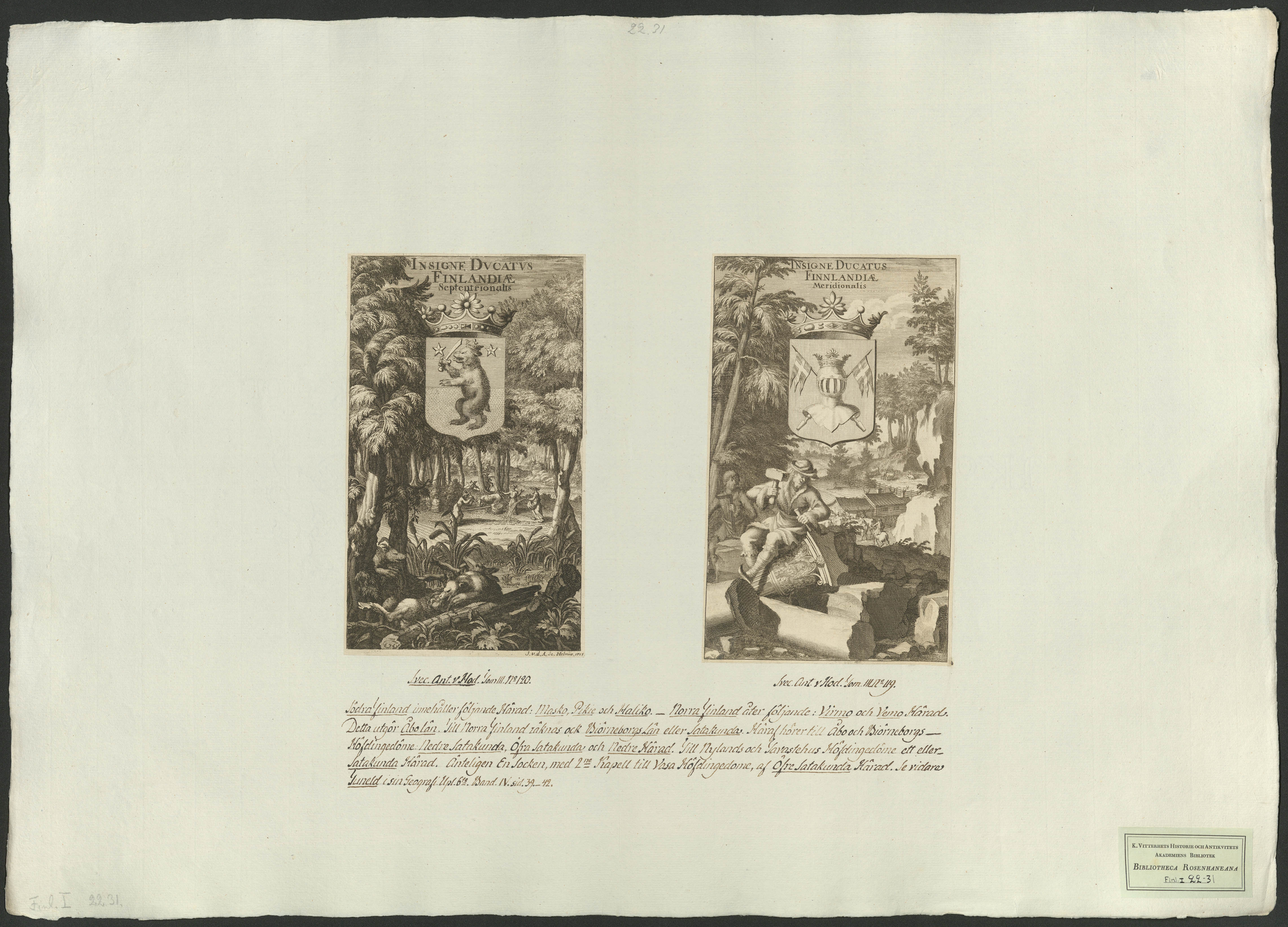 Beskrivning: 1 tryckt ark : [Johannes van den Aveelen]. J. v. d. A. Sc. Holmiæ 1715. Påskrift: "Svec. Ant. & Hod. Tom. III. No 119. Södra Finland innehåller följande härad ..." Påskrift: "Svec. Ant. & Hod. Tom. III. No 120. Södra Finland innehåller följande härad ..."