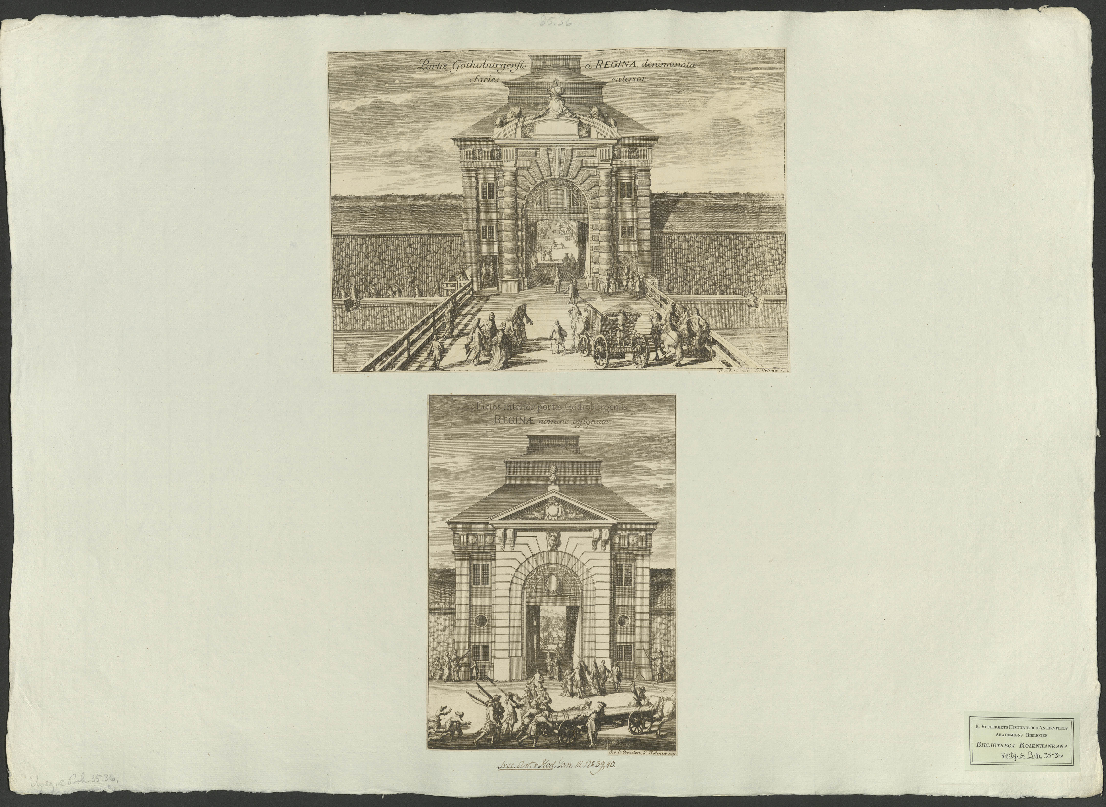 Beskrivning: 1 tryckt ark : J. v. d. Aveelen Sc. Holmiæ 1711. J. v. d. Aveelen Sc. Holmiæ 1711. Påskrift (gäller planschens båda bilder): "Svec. Ant. & Hod. Tom. III. No 39, 40."