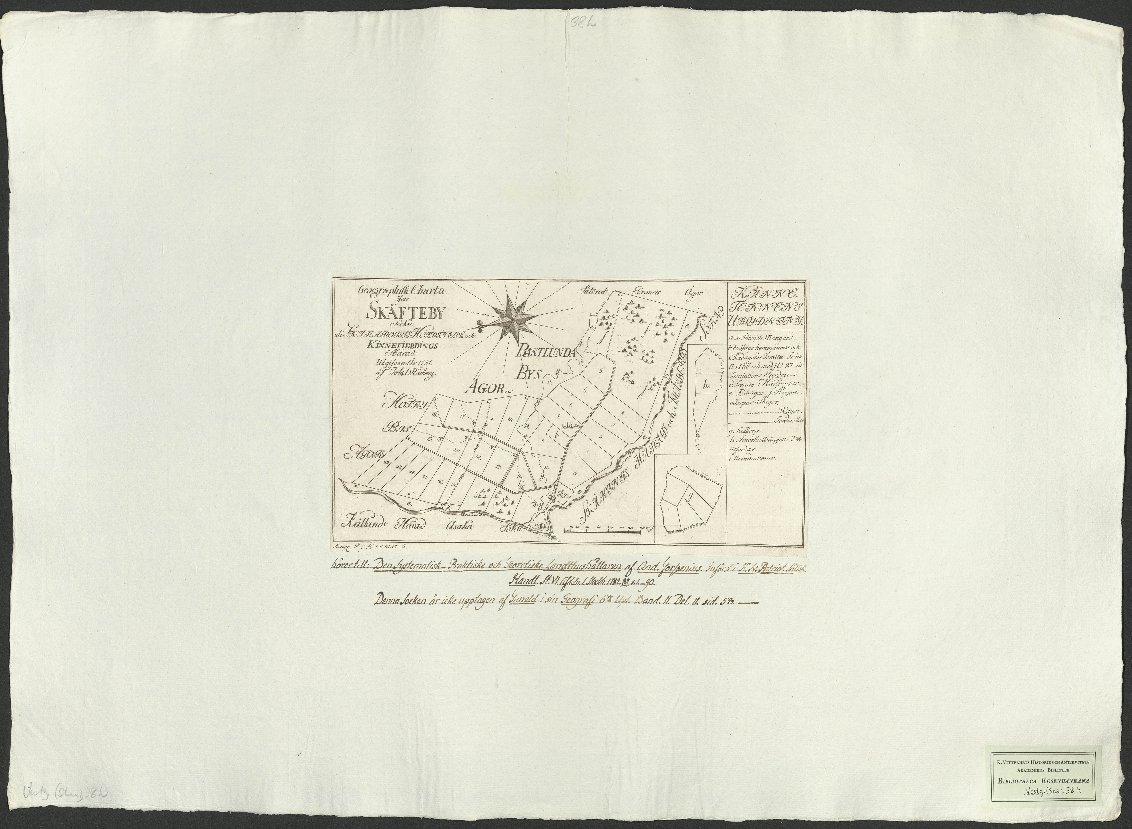Beskrivning: 1 karta : utgifven år 1781 af Joh. A. Rådberg Påskrift: "hörer till: Den systematisk-praktiske och teoretiske landthushållaren af And. Forsenius. Införd i K. Sv. Patriot. Sällsk. Handl. St. VI. Afdeln. I. Stockh. 1782. 8:o. S. 1-90"