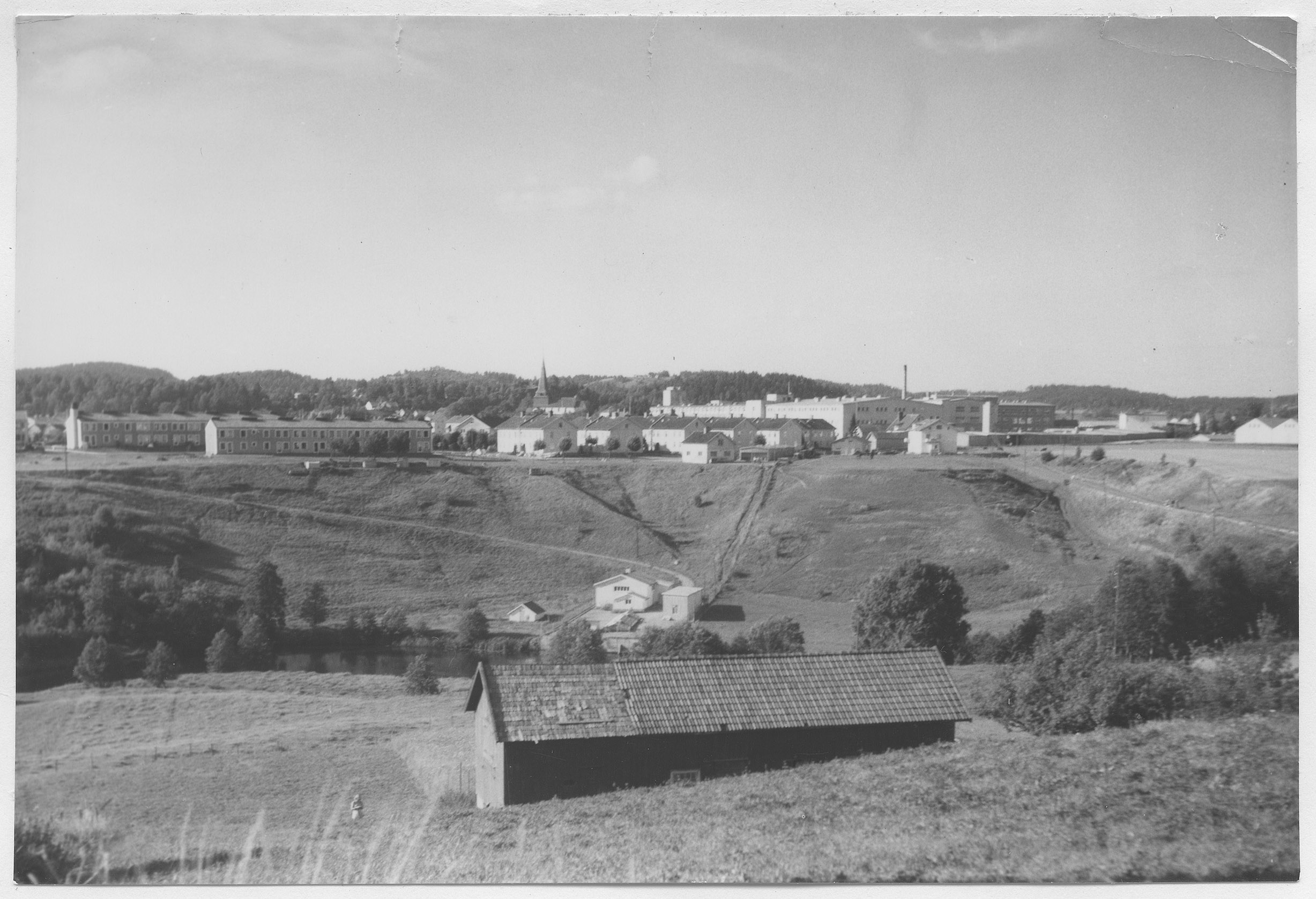 Beskrivning: Utkanten av tätorten i bakgrunden.