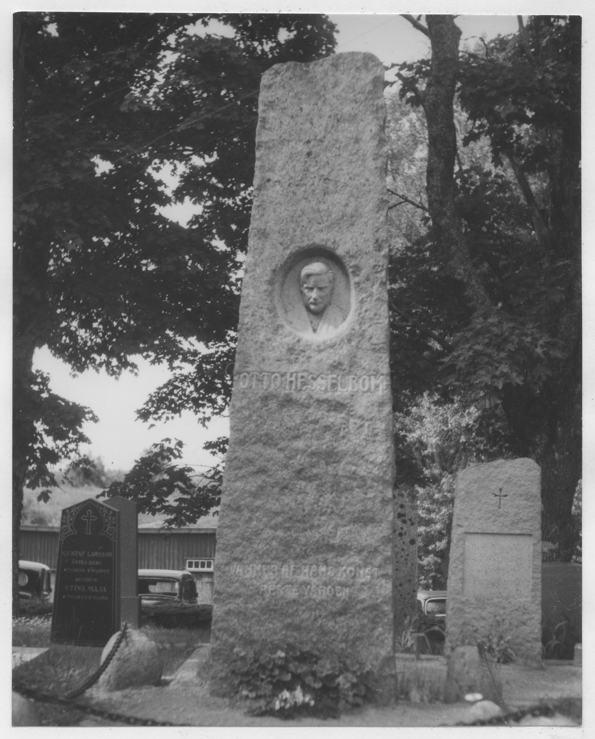 Beskrivning: Granitpelare: "Otto Hesselbom. Vänner av hans konst reste vården."