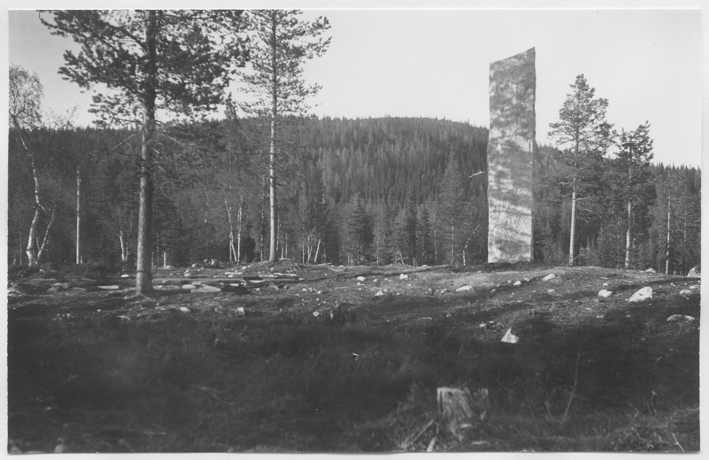 Beskrivning: Minnessten daterad 26/9 1936 till minne av när SJ:s dåvarande generaldirektör Axel Granholm symboliskt drog åt bulten i den sista skarven i Inlandsbanan den 26 september 1936 vid en håll- och lastplats som anlagts 1935 vid byn Kåbdalis.
