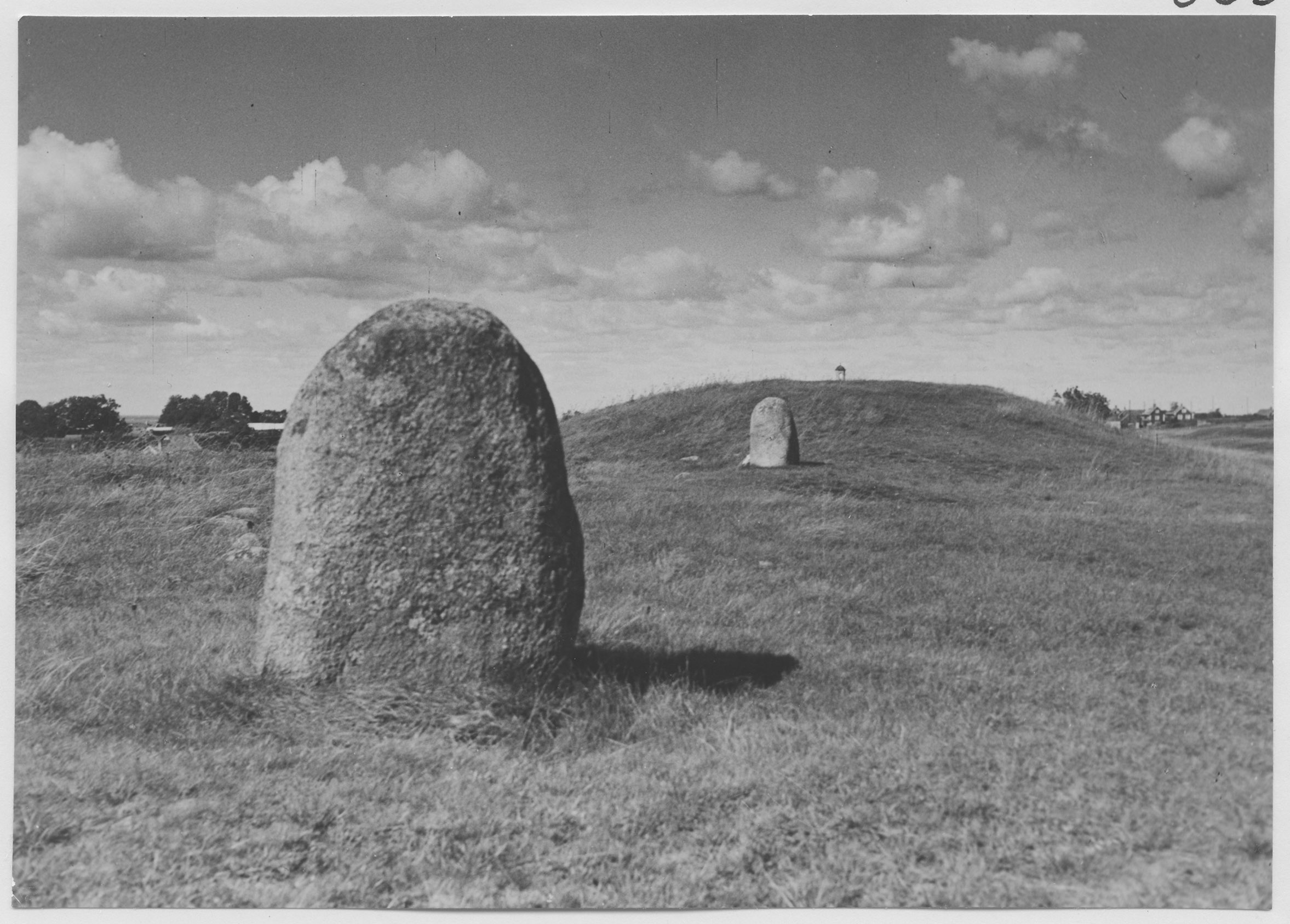 Beskrivning: Gravfält 500 meter söder om Resmo kyrka 2 resta stenar gravhög och till vänster en treudd.