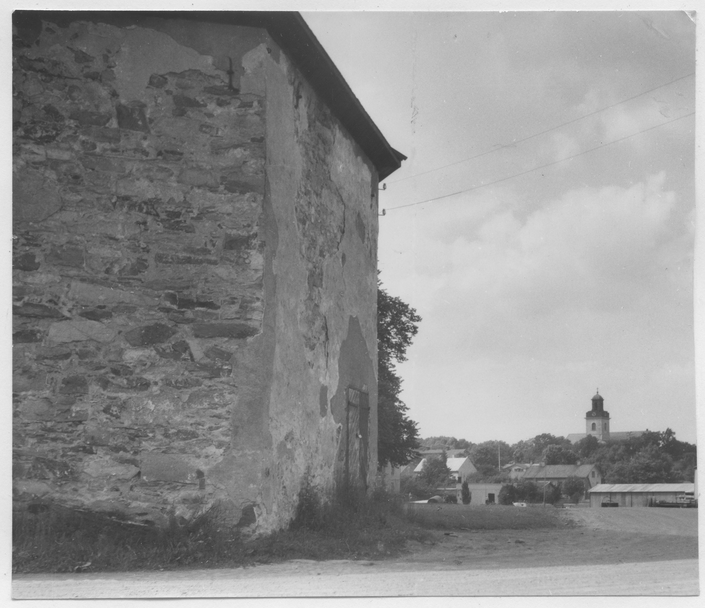 Beskrivning: Kyrkans östparti. I Fonden den år 1806 nyuppförda stadskyrkan. Ödekyrkan från 1600-talet.