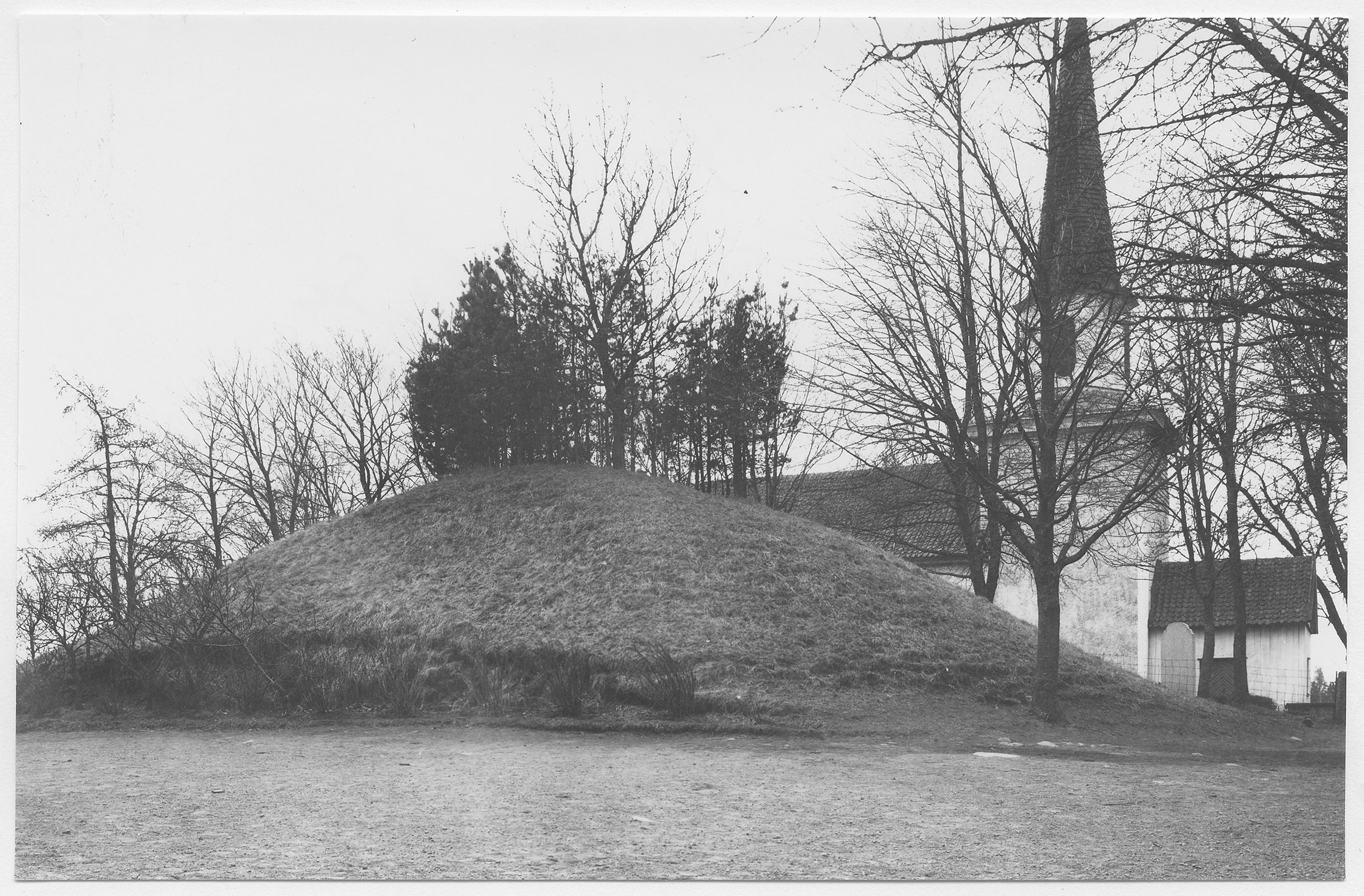 Beskrivning: I förgrunden den 6 m höga Kung Ranes hög, en av Västergötlands största gravhögar.