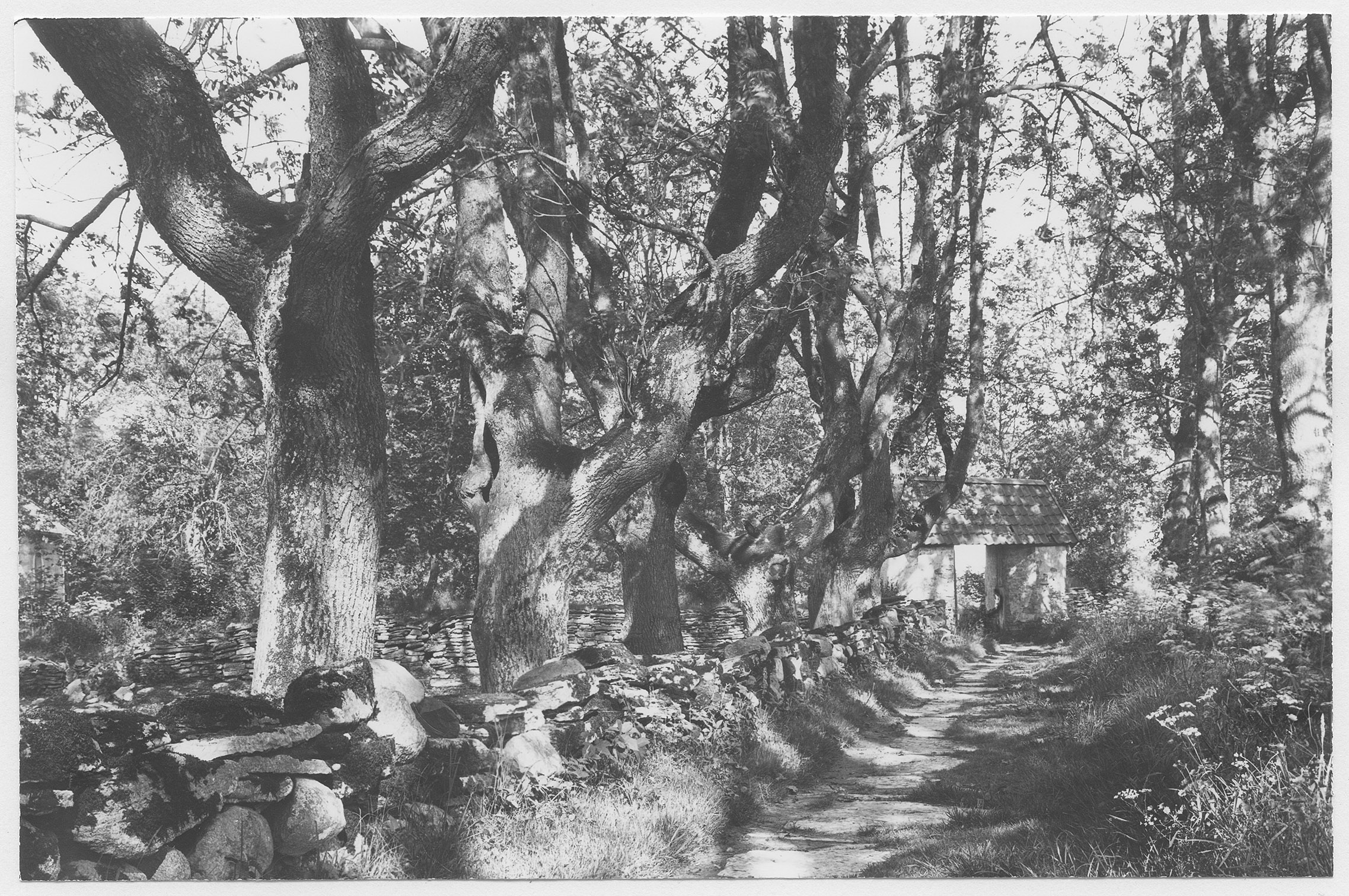 Beskrivning: Kalkstensgärdesgård. I fonden Plantaberget.