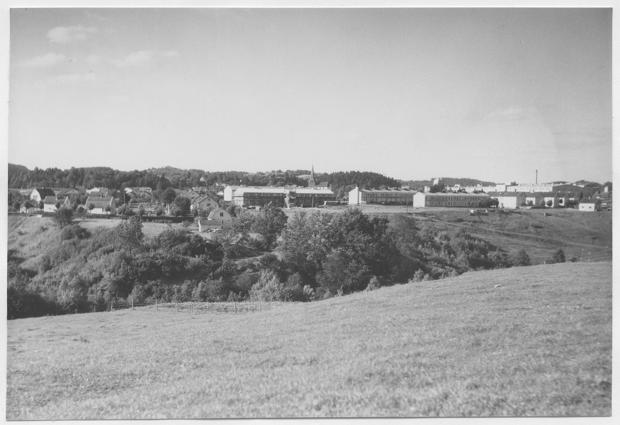 Beskrivning: Utkanten av tätorten i bakgrunden.