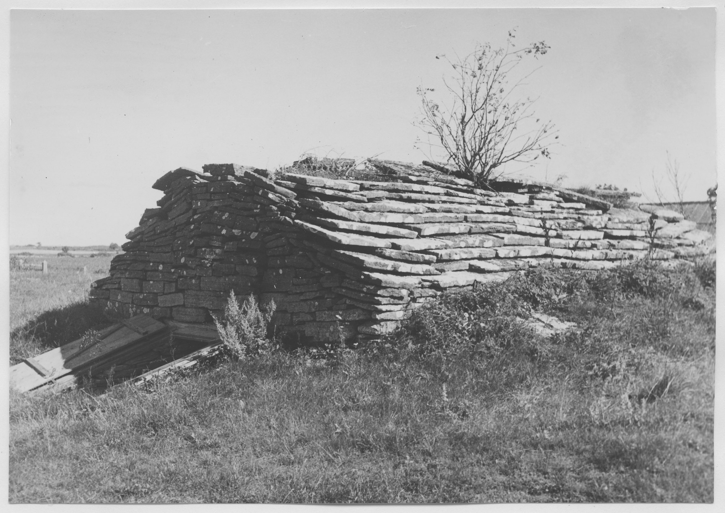 Vickleby, traditionsbetingad källare med tak av överkragade kalkstenshällar