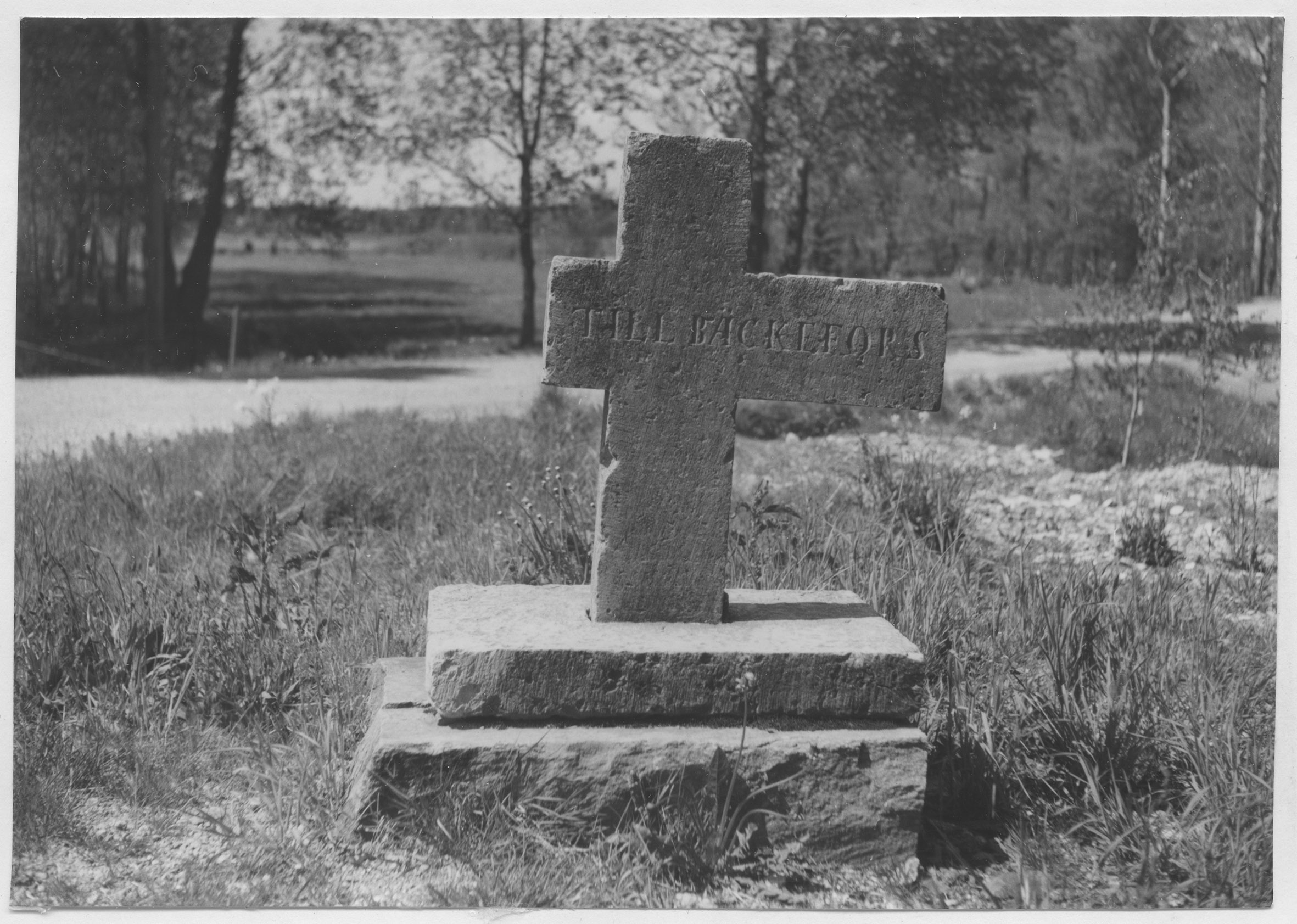 Beskrivning: Vägvisare vid Bäcke kyrka. (Gamla vägen till Bäckefors bruk).