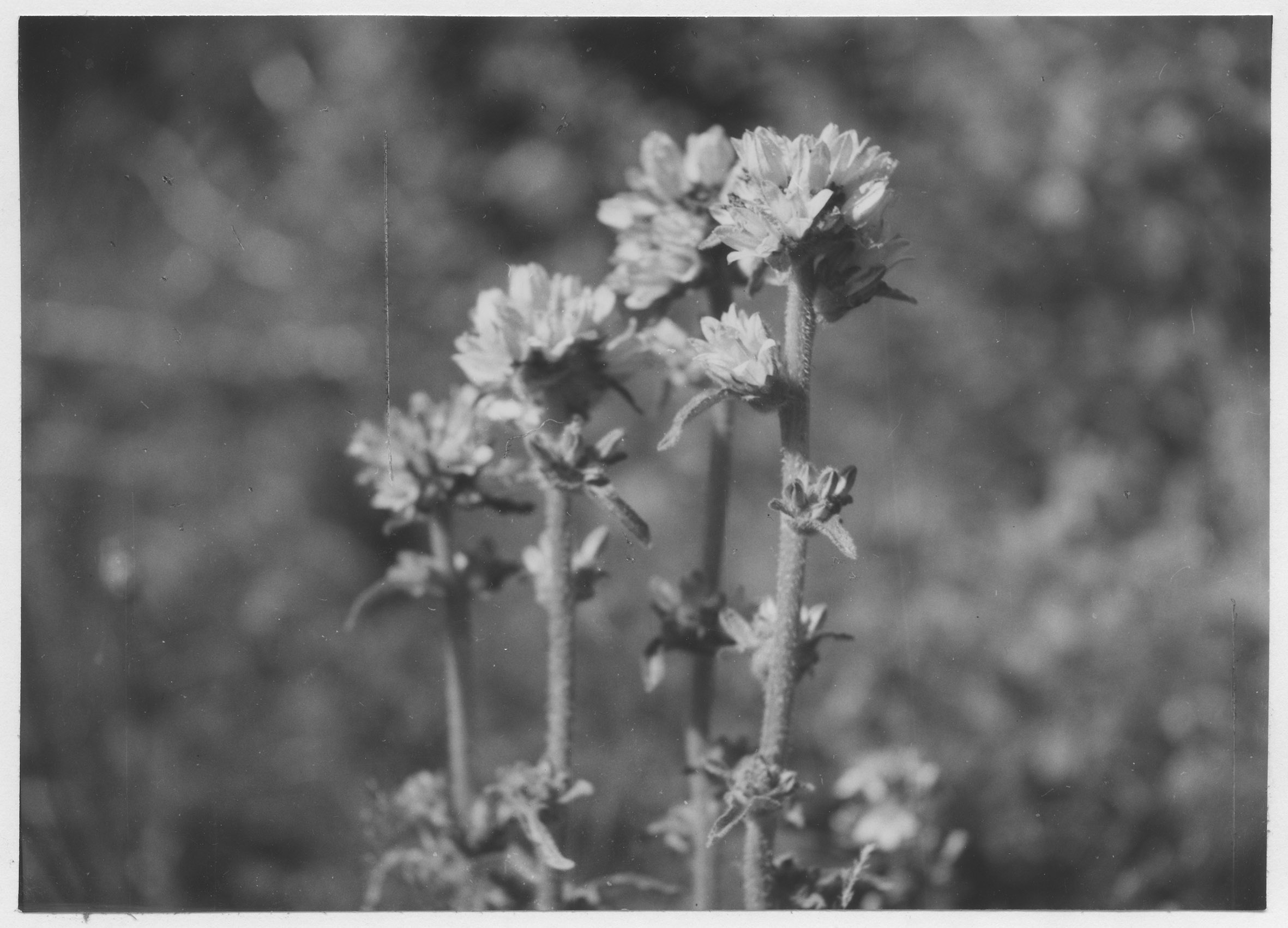 Beskrivning: 1 km NV om kyrkan. Ljusblå skogsklocka, Campanula cervicaria.