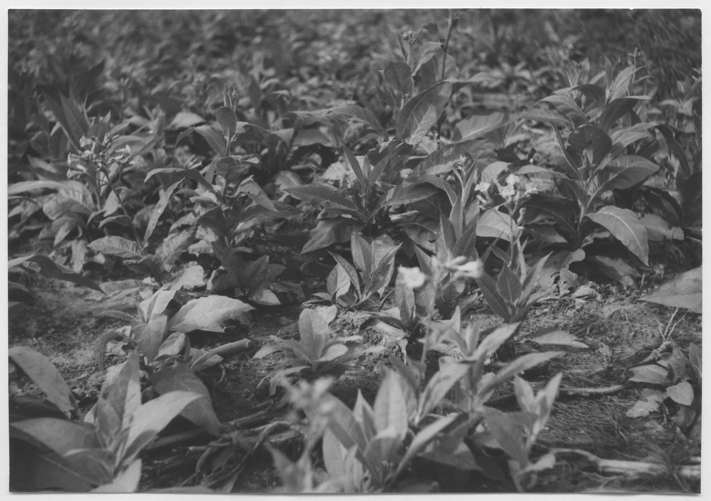 Beskrivning: Tobaksodling. Kvarlämnade fröplantor