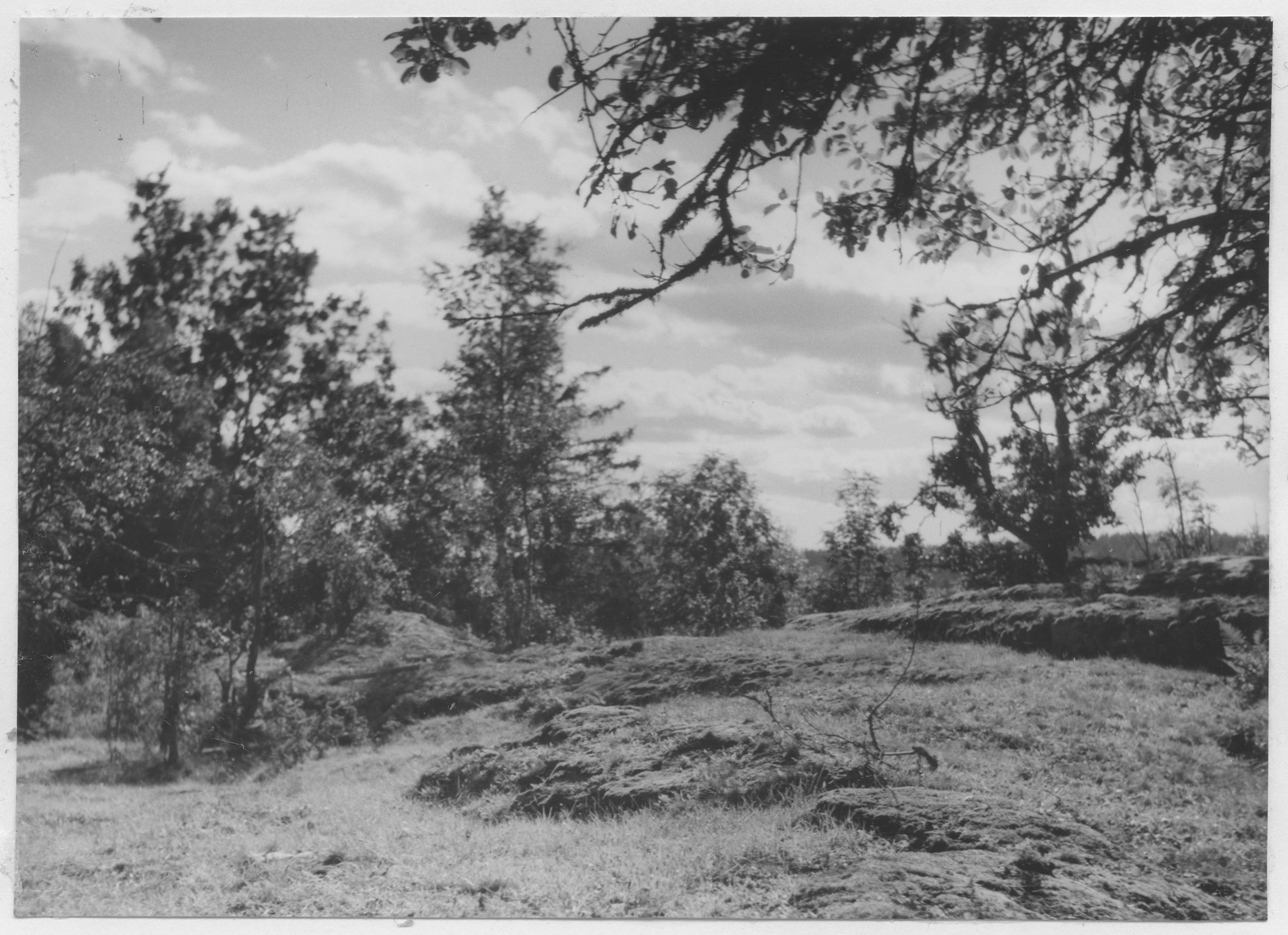 Beskrivning: Ödelagt torpställe V om kullen. Fruktträd, hassel, ask, lönn, ek, haml.rönn, Nardus.