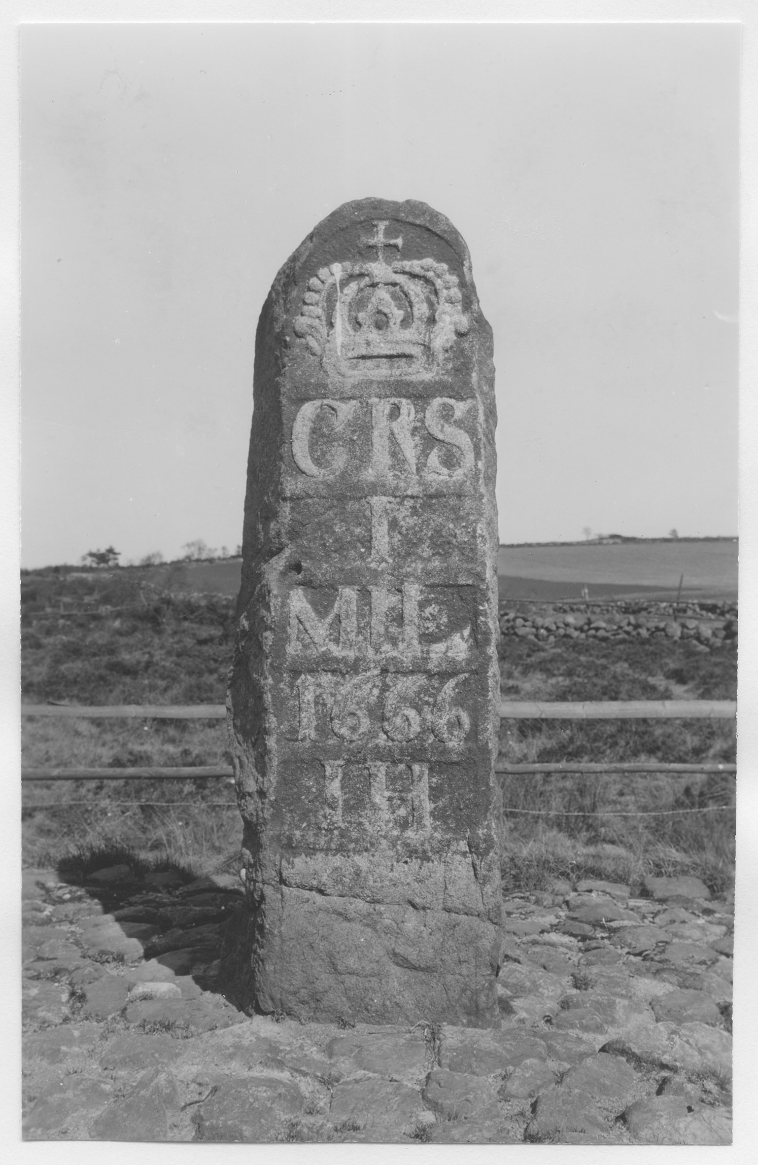 Beskrivning: Hallandsås vid Båstad. Milsten.
