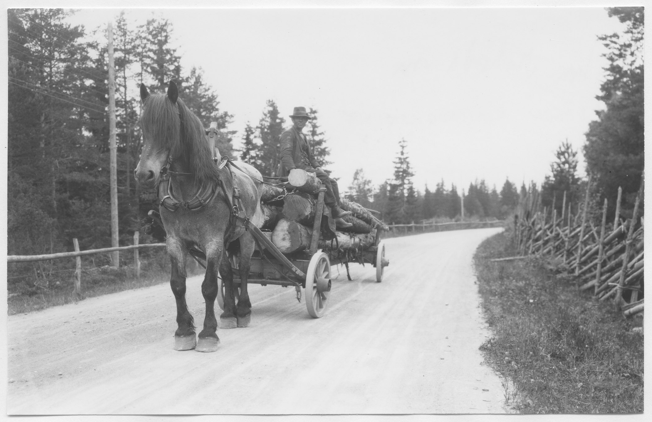 Beskrivning: Den Småländska barrskogen förädlas och på vägarna möter man ofta timmerlass, som transporterar barrträdsstockar till sågen