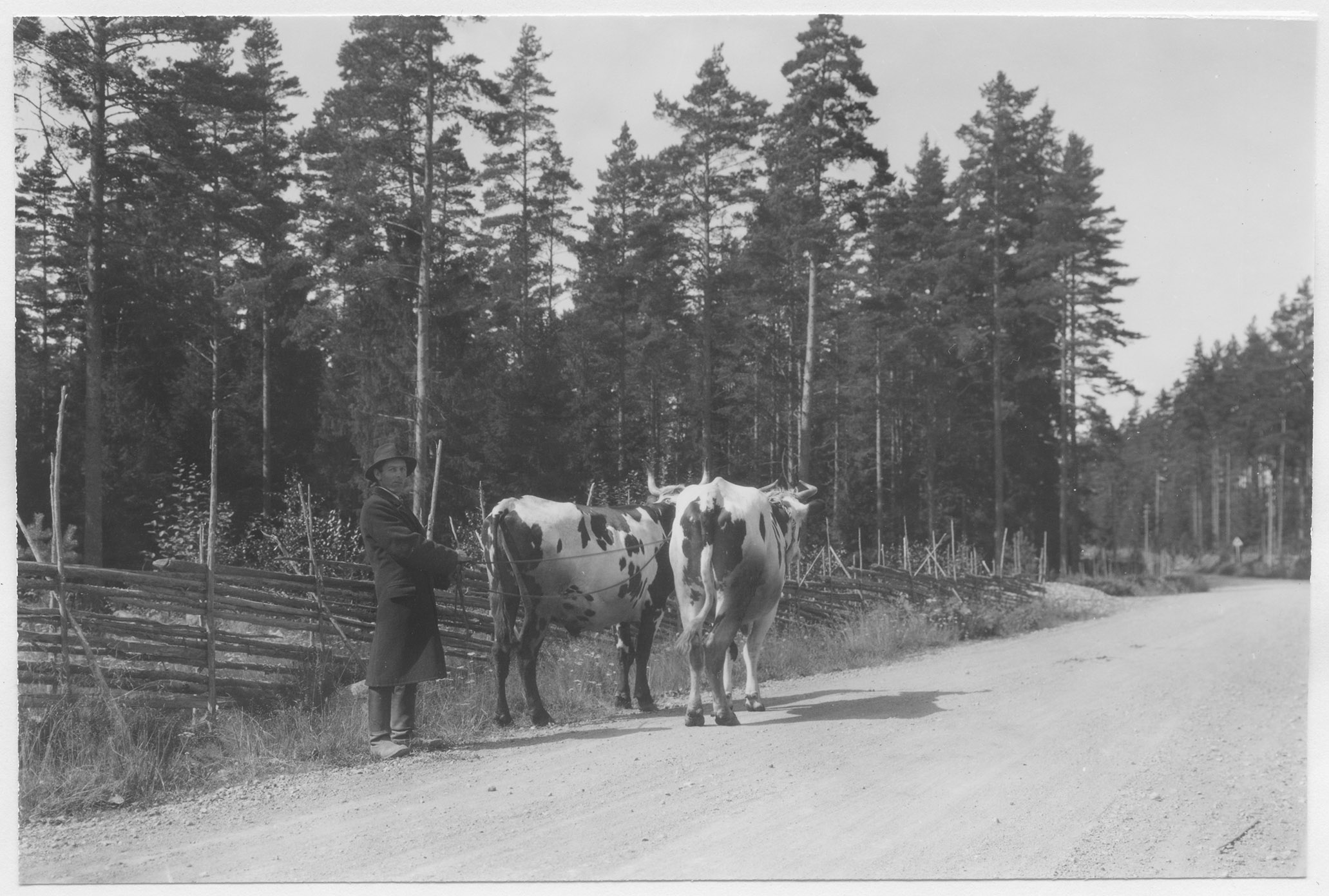 Beskrivning: Oxar hem från Vetlanda marknad.