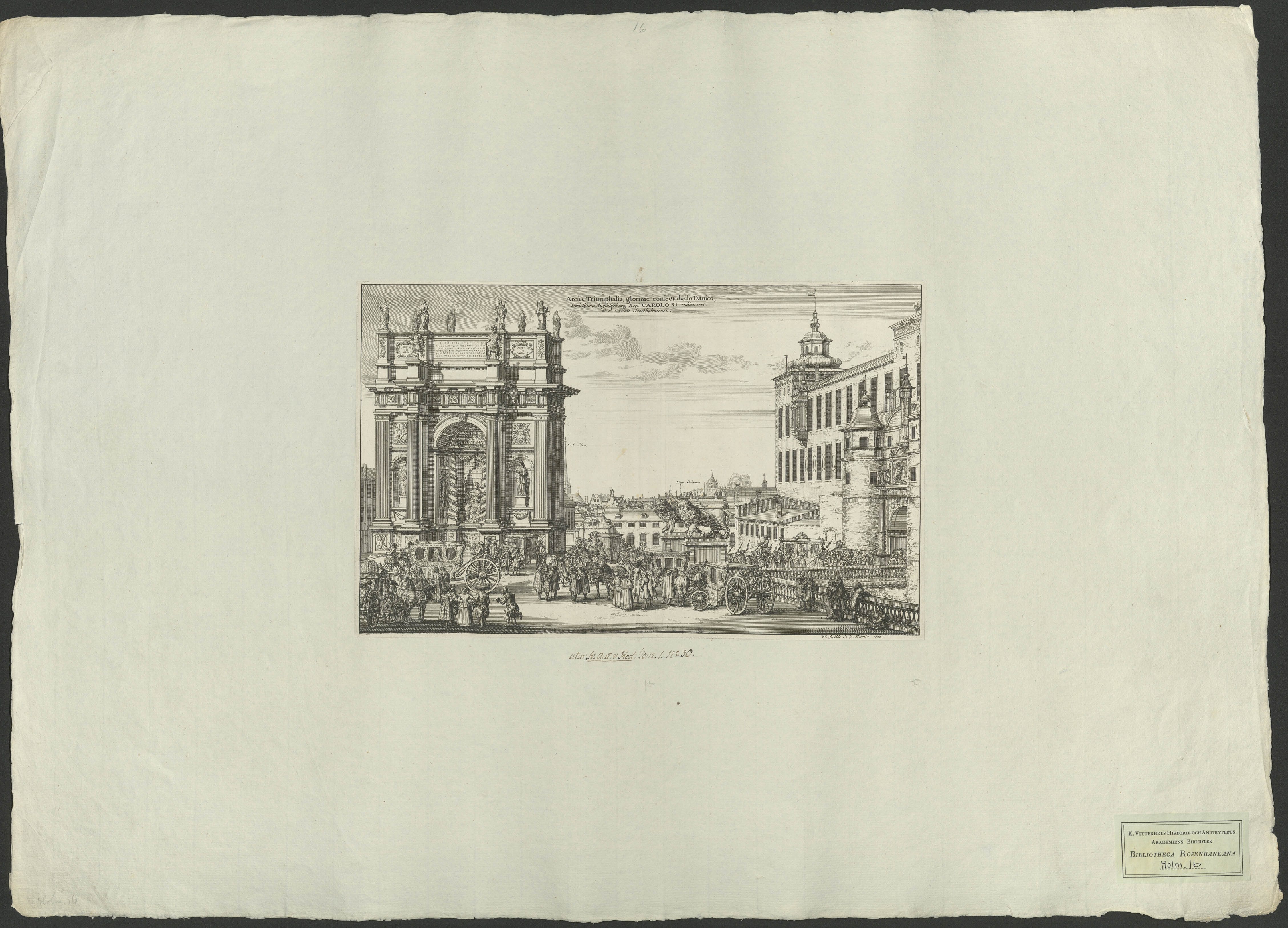 Triumfbåge, som efter danska krigets lyckliga slut restes åt den återvändande segerrike och store konungen Karl XI av Stockholms stad