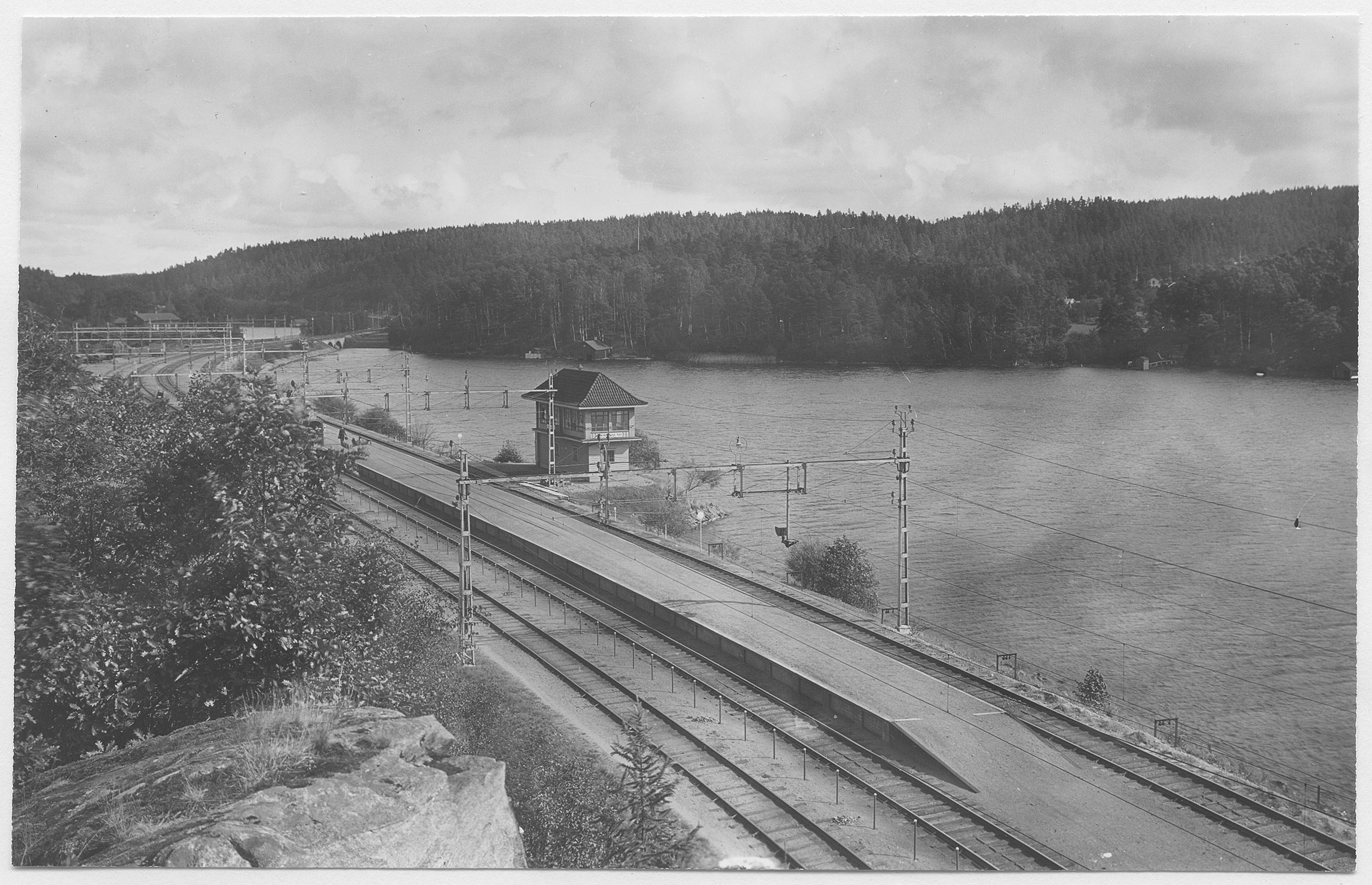 Beskrivning: Västra stambanan vid sjön Sävelången.