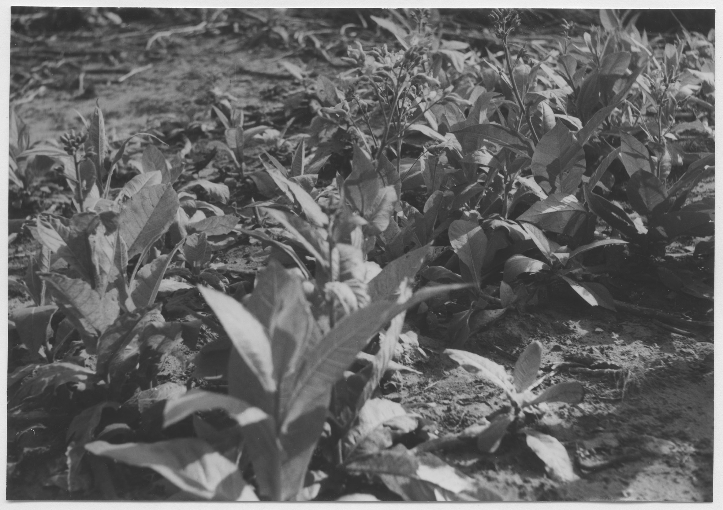 Beskrivning: Tobaksodling. Kvarlämnade fröplantor