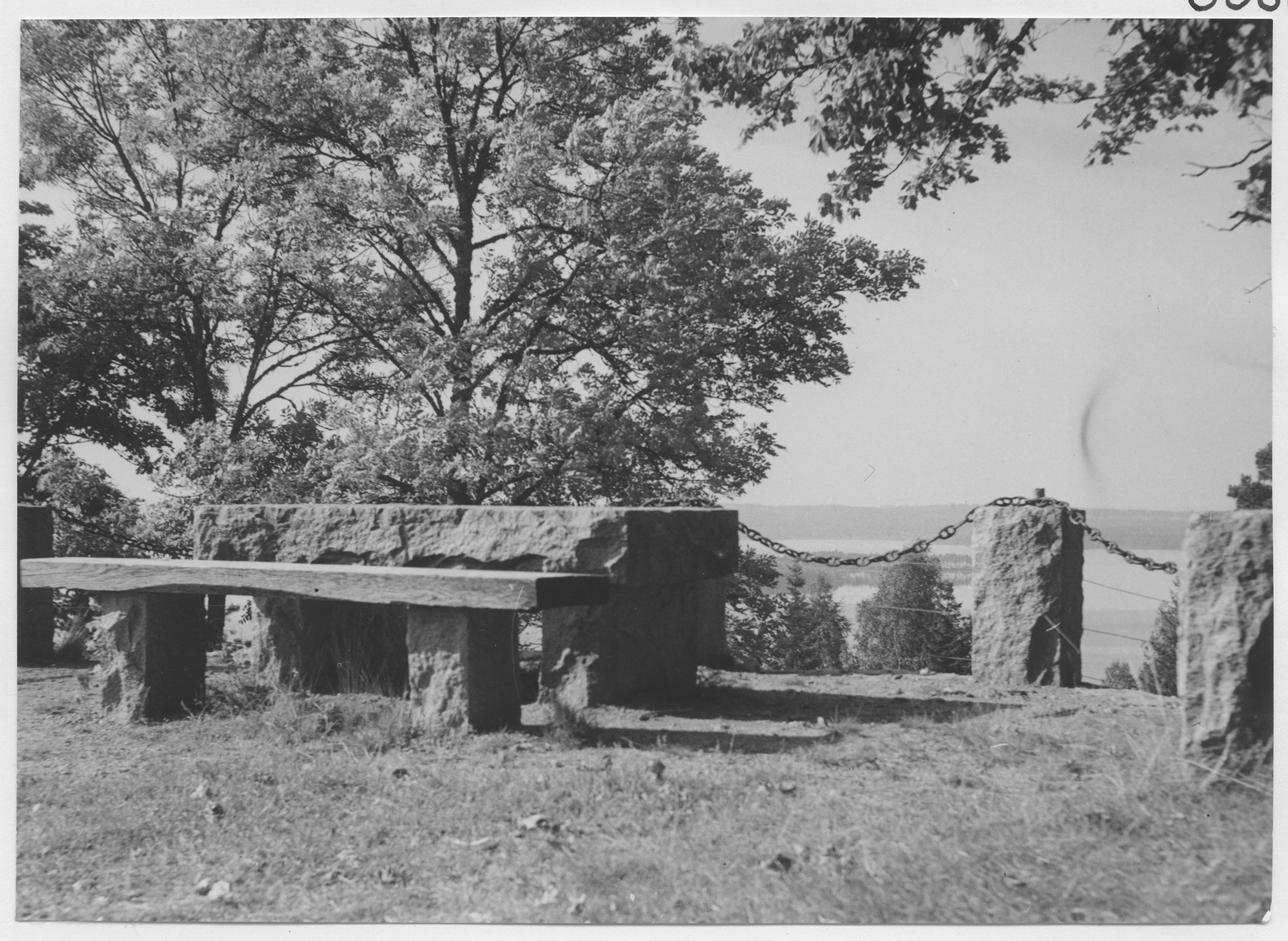 Beskrivning: Utsikts- och viloplats vid stranden av sjön Rusken anordnad i sällskap med den nya vägbyggnaden