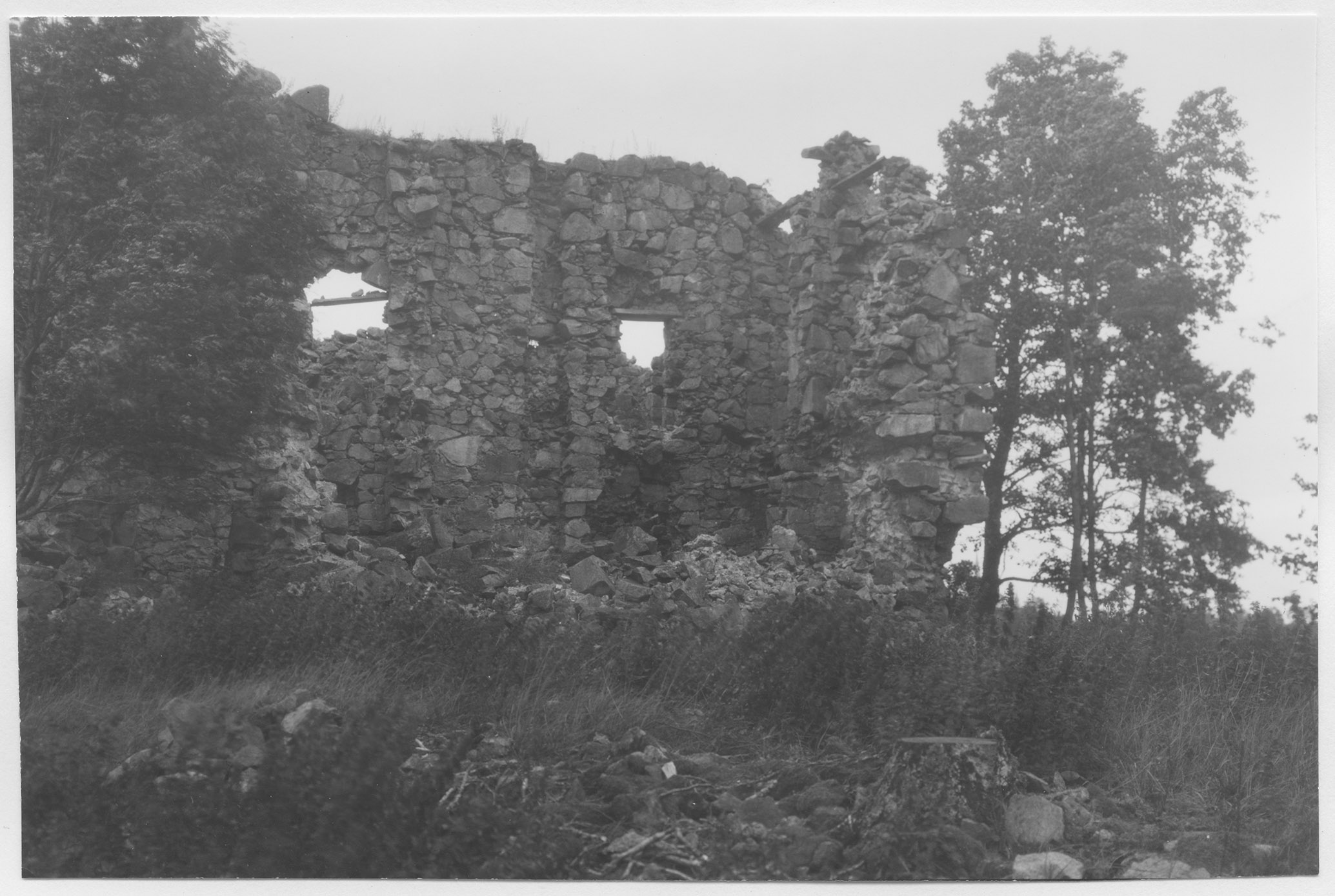 Beskrivning: Anmärkning (övrig): Bilden är inte daterad i arkivet och det går inte att utgå ifrån exempelvis negativnummer. Perioddateringen baseras på att det är den totala utsträckningen i tiden för de säkert daterade bilderna i samma arkiv. Beskrivning: Ruinen av Eksjöhovgård. Begynnelsen av dess förfall förskriver sig från mitten av 1600-talet.