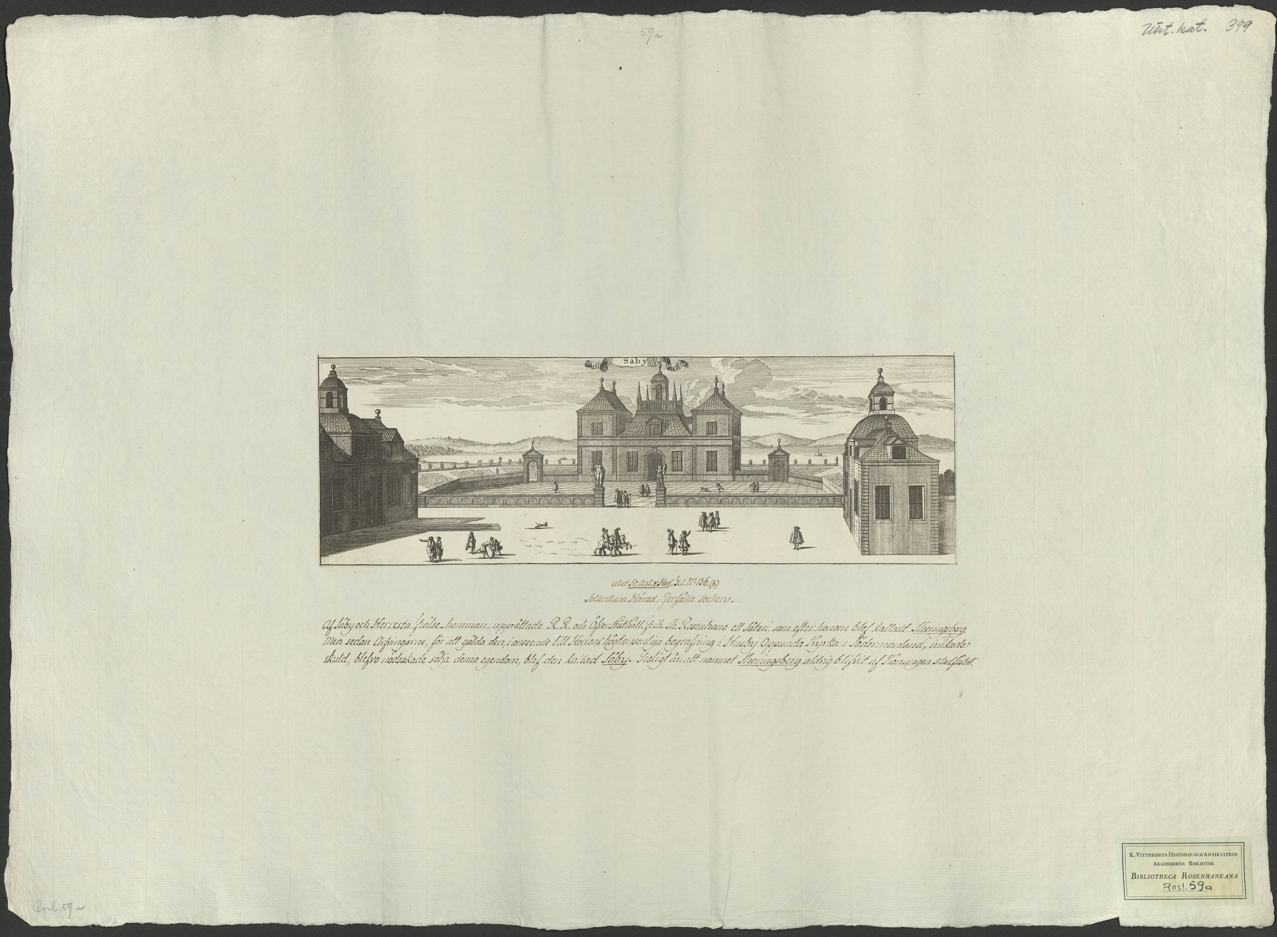 Beskrivning: 1 tryckt ark : [Jean Le Pautre]. Påskrift: "utur Sv. Ant. & Hod. T. I. No 136(b). Sollentuna härad. Jerfälla socken." Därefter tre rader text om bl a namnet Sheringsberg.