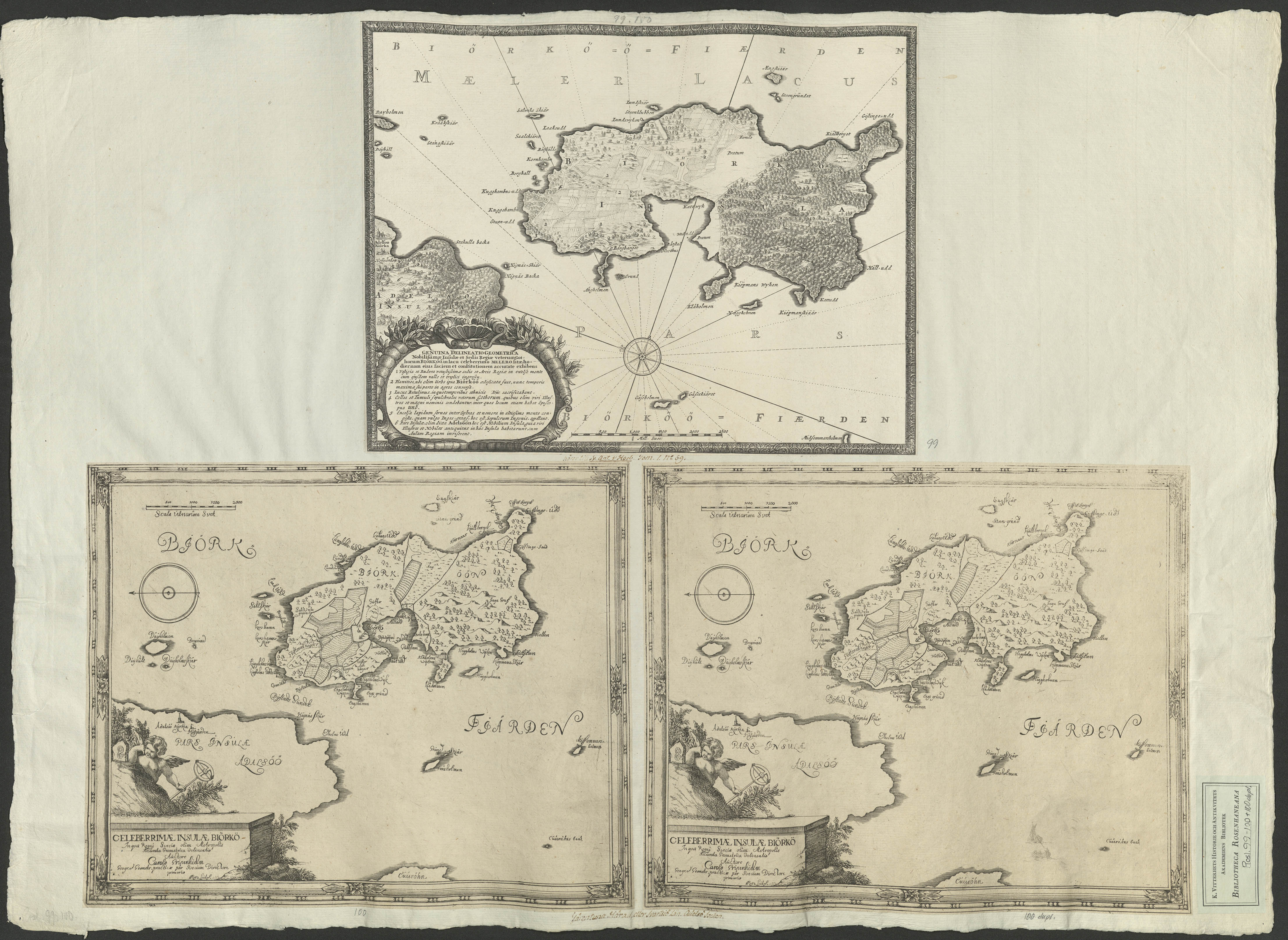En naturtrogen geometrisk avbildning av den mycket berömda ön och de gamla goternas kungliga säte Björkö, belägen i den mycket kända sjön Mälaren, vilken korrekt visar dess nutida utseende