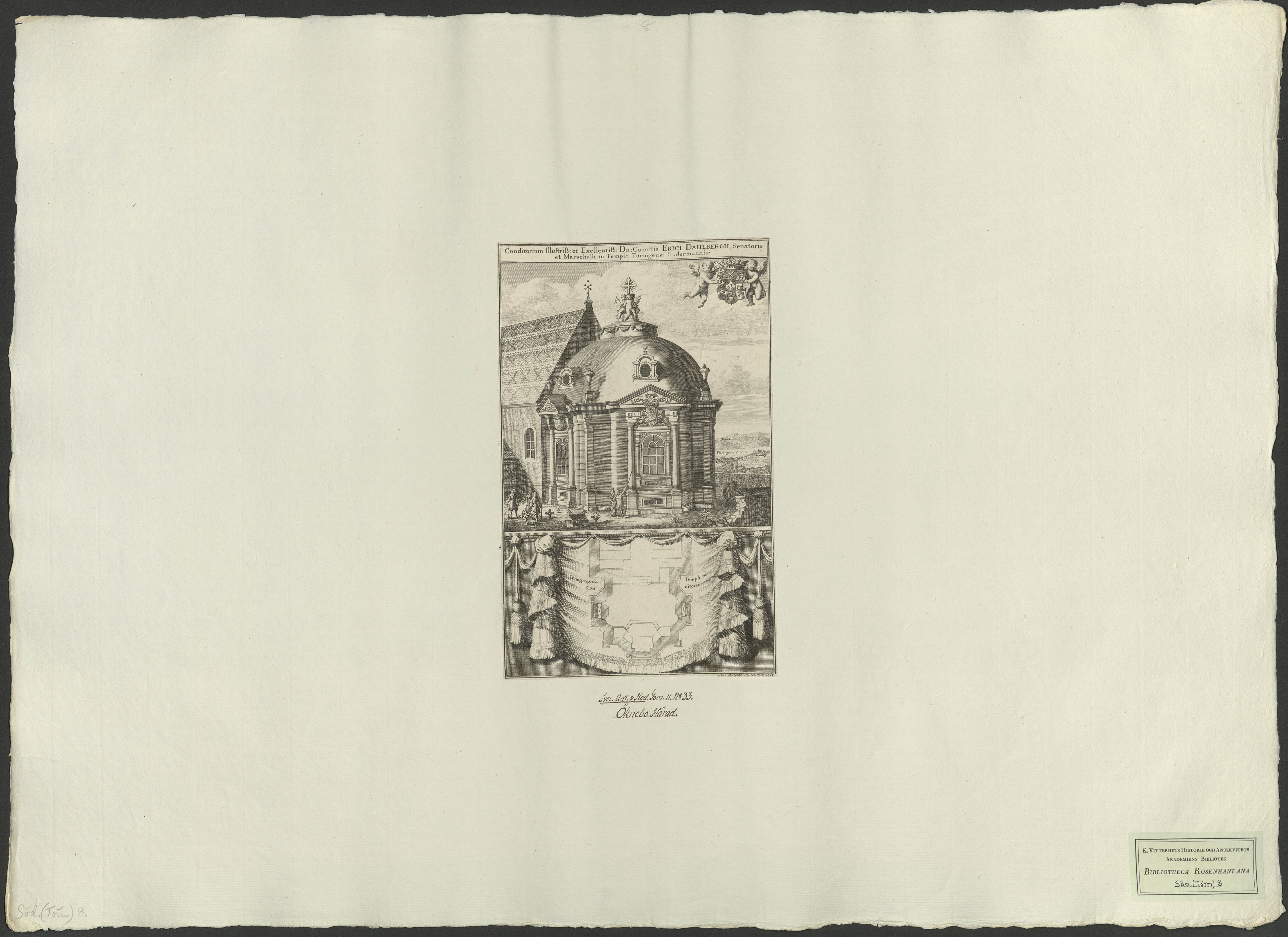 Beskrivning: 1 tryckt ark : j.v.d. Aveelen sc. Påskrift: "Svec. Ant. & Hod. Tom. II. No 33. Öknebo härad."