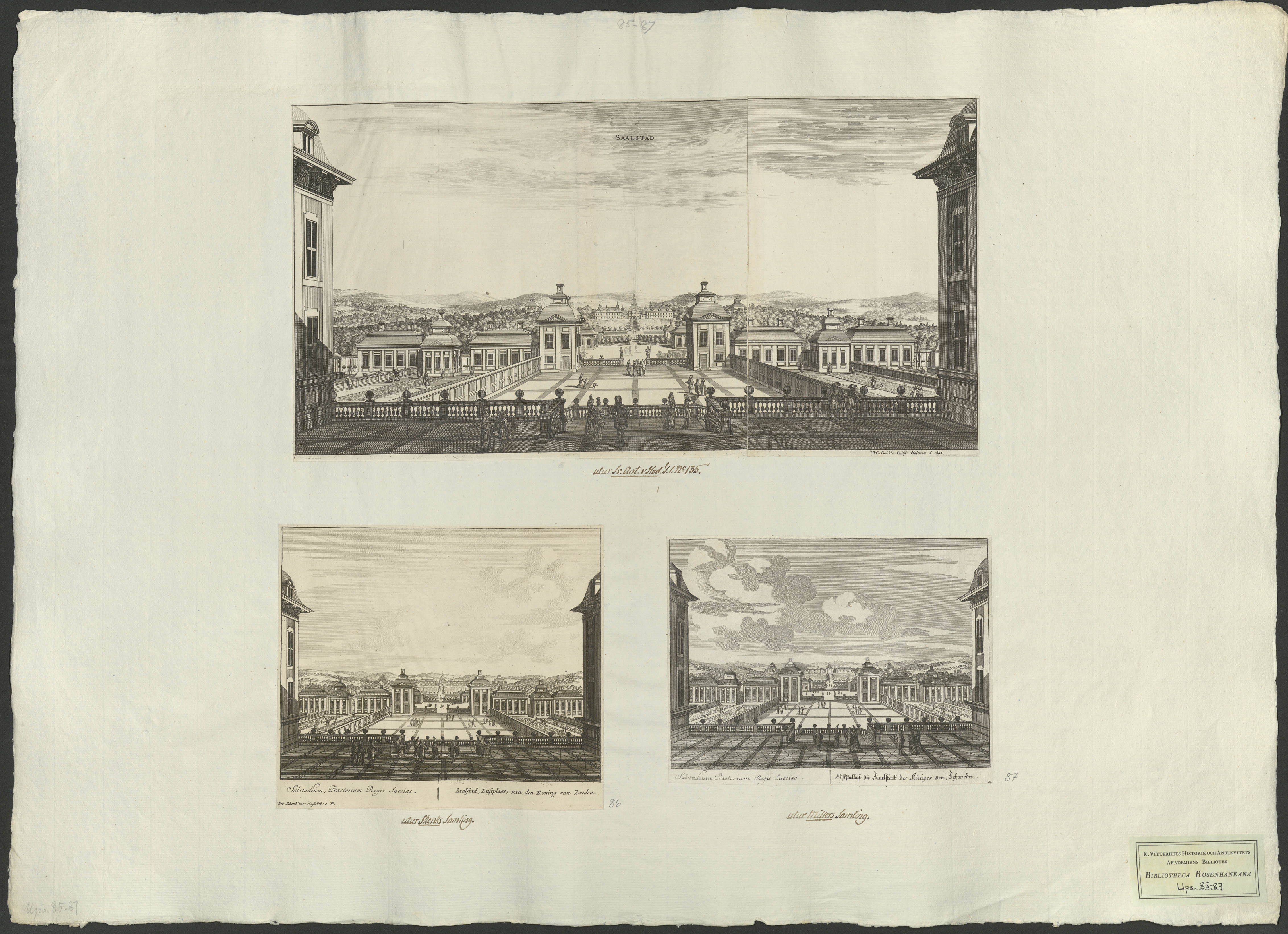 Beskrivning: 1 tryckt ark : W. Swidde Sculp: Holmiæ A. 1694. Påskrift: "utur Sv. Ant. & Hod. T. I. No 135."