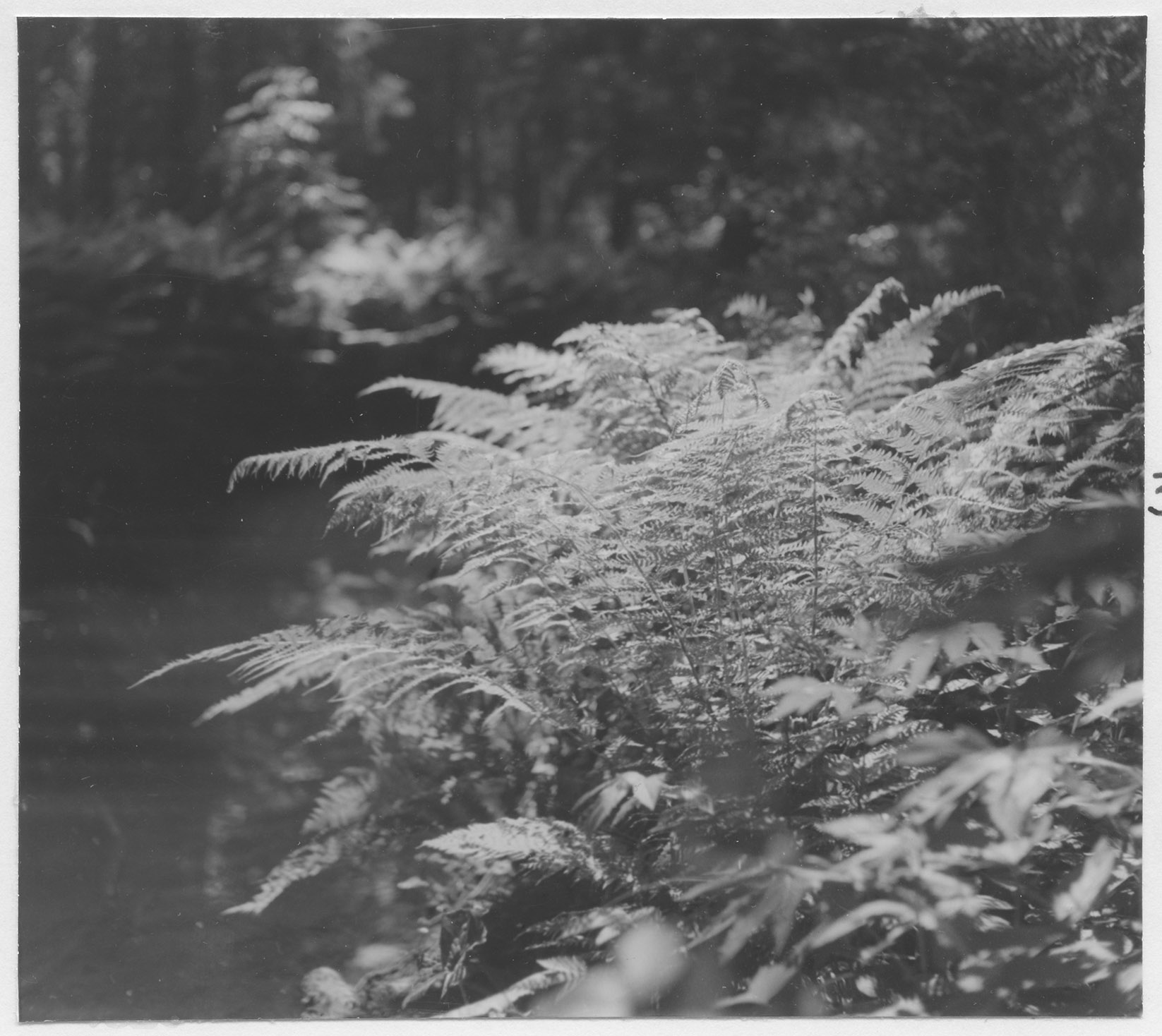 Beskrivning: Ormbunkar vid ån.