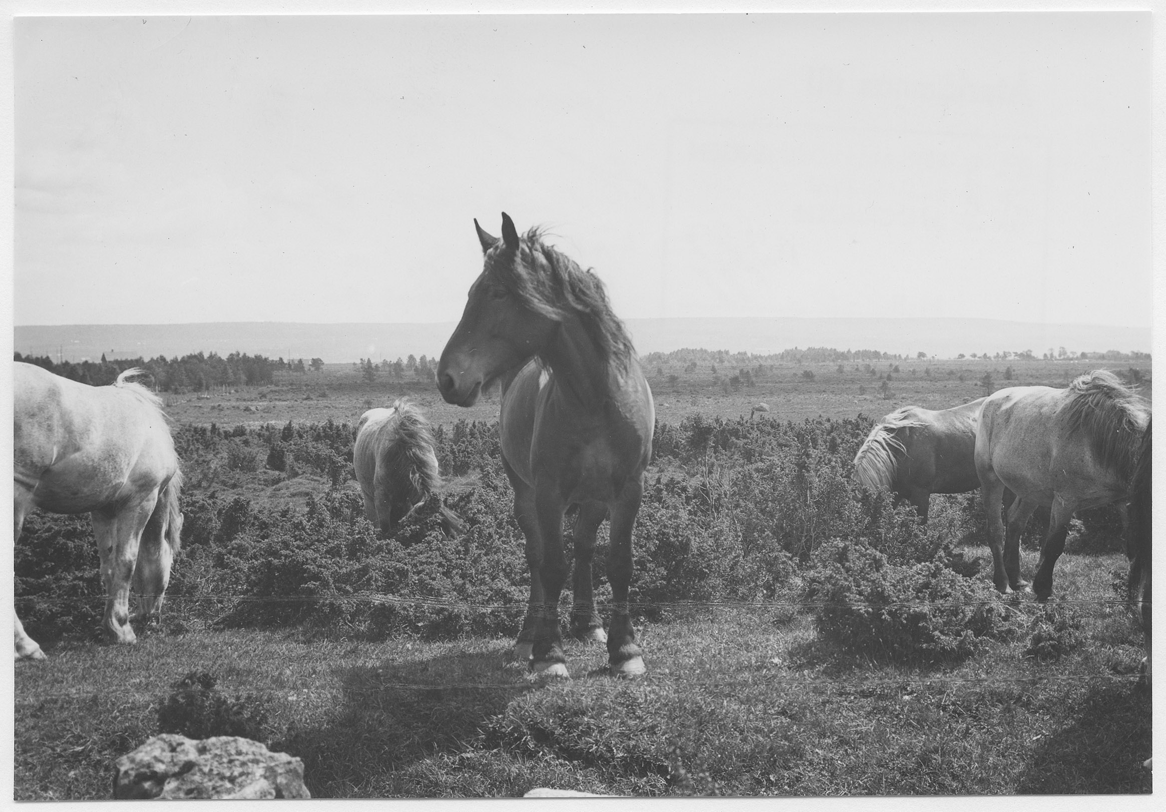 Beskrivning: Hästuppfödning på Falbygdens åldriga betesmarker.